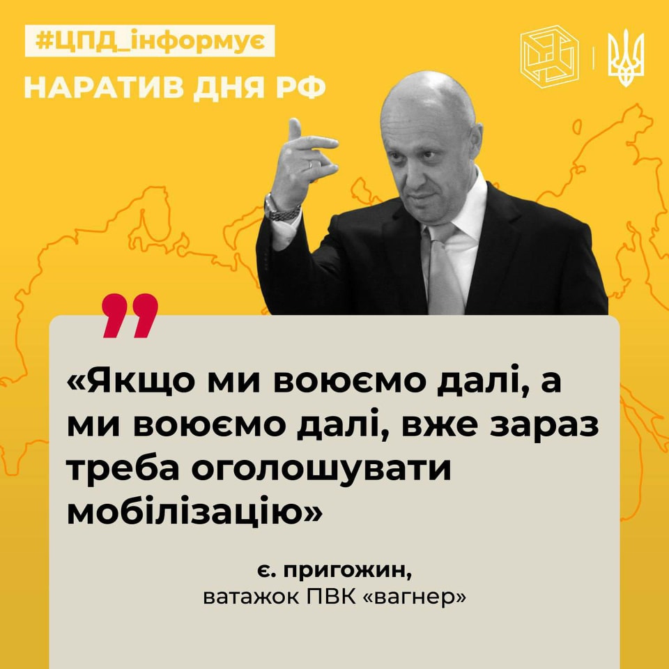 є. пригожин вже неодноразово робив заяви, які йдуть у розріз офіційній позиції влади рф щодо загальної мобілізації.