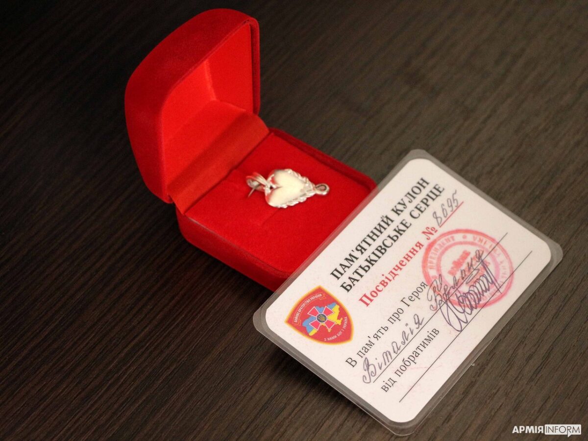 Символічну нагороду створили та виготовили волонтери з «Бойового братерства України». На зворотному боці кулона нанесли ім’я загиблого героя, щоб кожна дитина могла завжди носити частинку батьківського серця з собою. До відзнаки надається іменне посвідчення.
