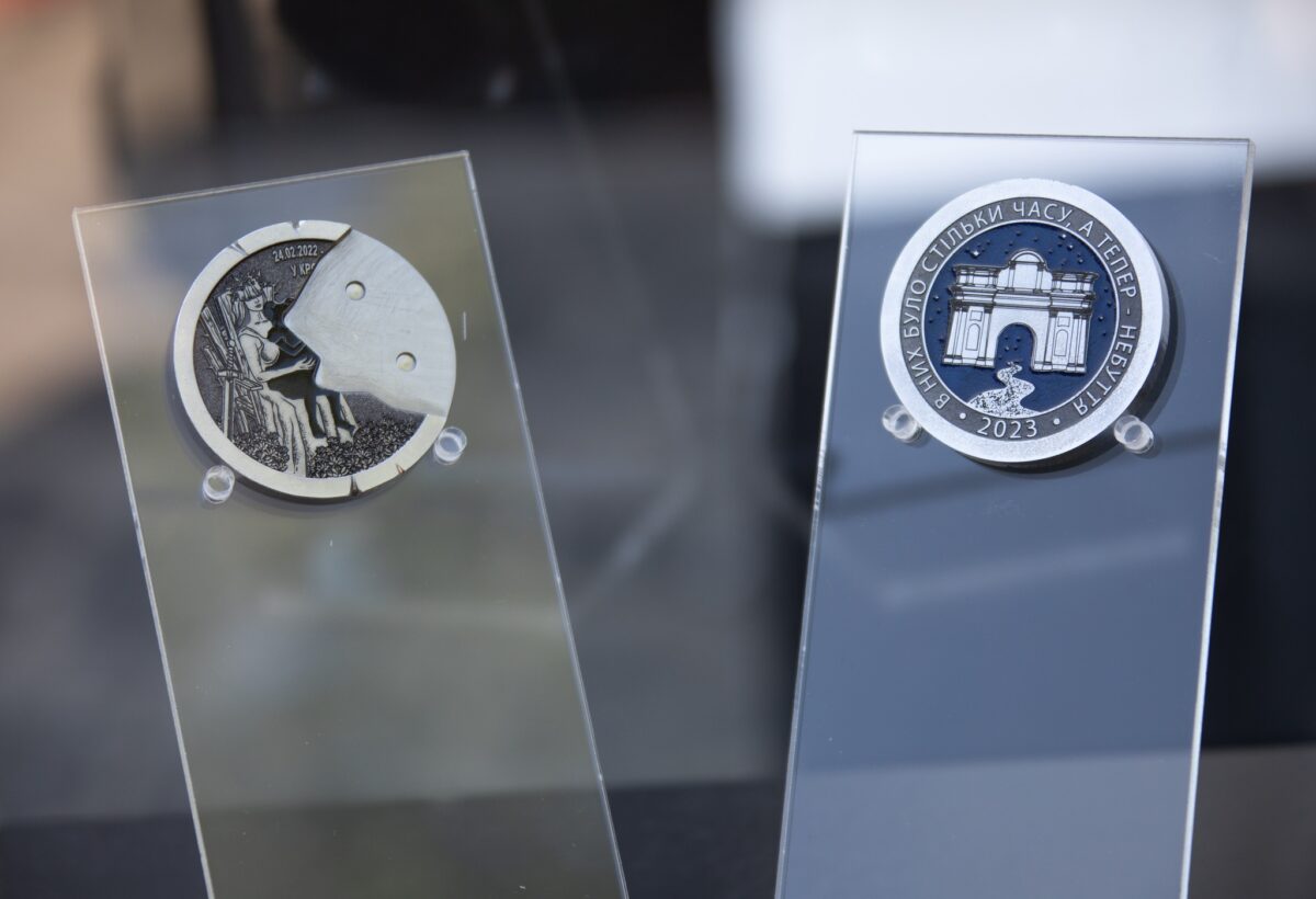 Пам’ятна медаль, яку презентували в Музеї війни, створена з уламку броні російського бронетранспортера, знищеного між містами Буча та Ірпінь 4 березня 2022 року. На аверсі зображено небо й доріжку, якою невинні душі йдуть у кращий світ. Також на монеті зображено абрис Верхньої брами, де рік тому було презентовано мультимедійний проєкт «Мартиролог. Діти…».