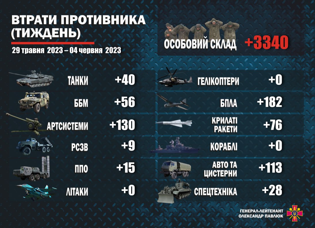 За тиждень з 29 травня по 04 червня Сили оборони України знищили: