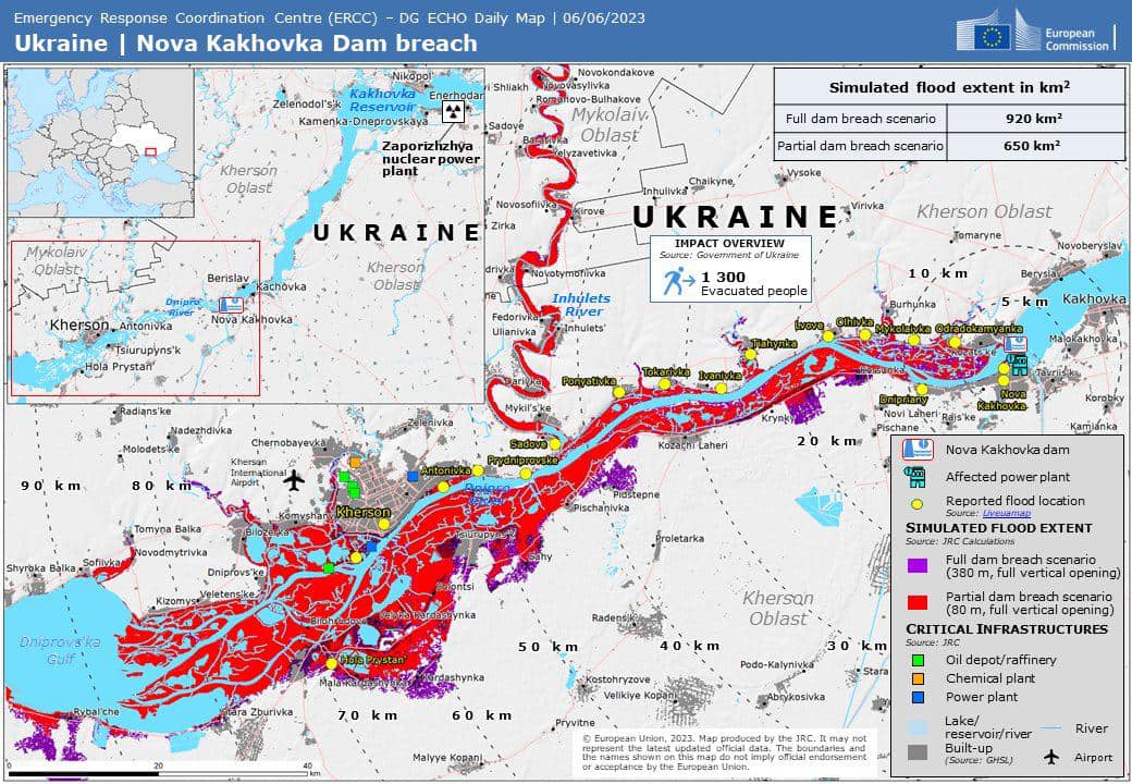 Україна звернулася за допомогою до ЄС для ліквідації наслідків руйнування Каховської ГЕС у Херсонській області.
