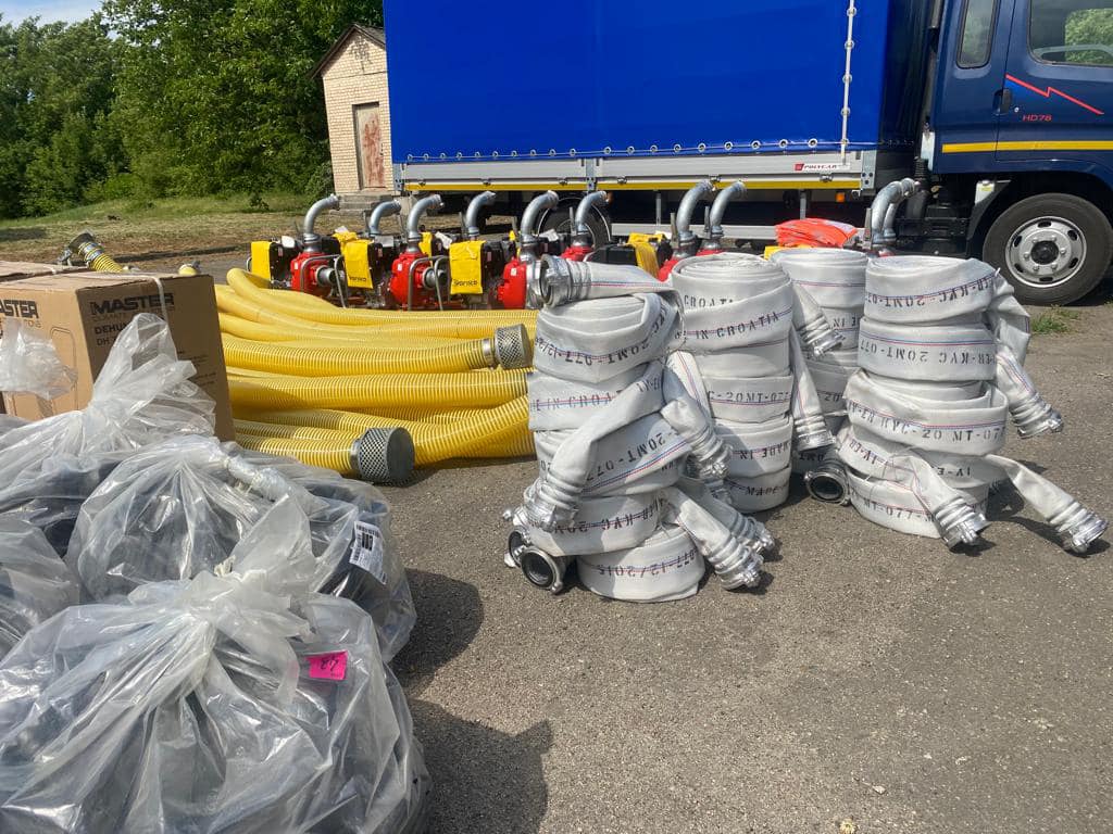 До допомоги активно долучаються міжнародні партнери. Зокрема, домовилися, що Програма ООН з відновлення та відбудови миру виділила 30 тис. дол. США на придбання та передачу громадам Херсонщини 26 надувних човнів, 100 сонячних прожекторів і 32 портативних зарядних станцій із сонячними панелями. Ще 50 тис. дол. США – на мотопомпи, бензопили, гідроштани і черевики для надання термінової підтримки Державній службі з надзвичайних ситуацій.