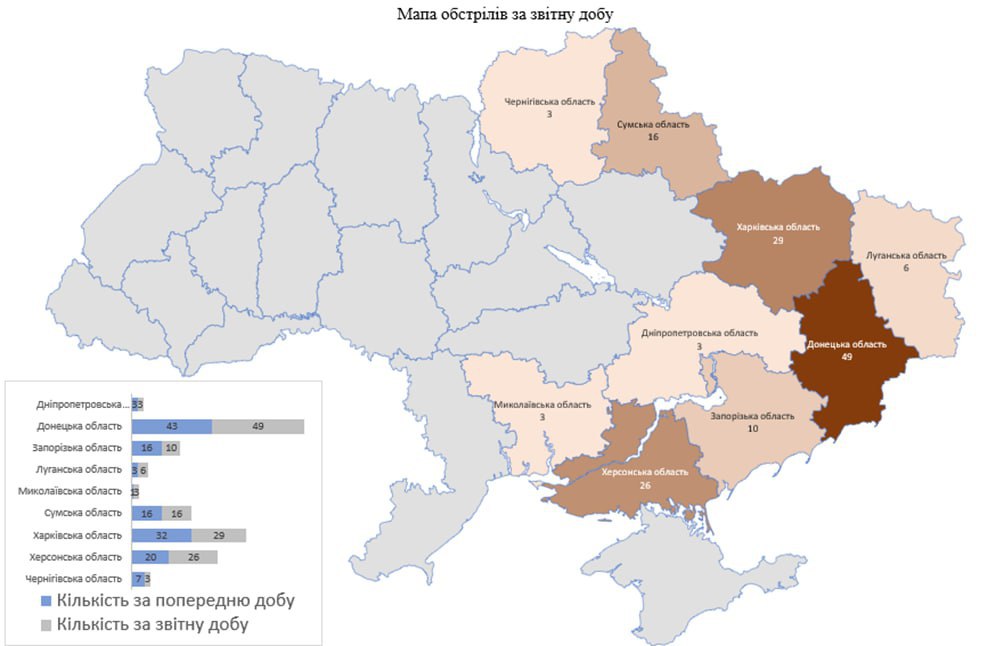 «Із різних видів озброєння (міномети, танки, артилерія, РСЗВ, БПЛА, ЗРК, тактична авіація) були обстріляні 145 населених пунктів та 104 об’єкти інфраструктури», — йдеться у повідомленні.