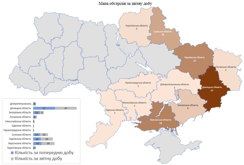 «Із різних видів озброєння (міномети, артилерія, РСЗВ, БПЛА, стратегічна та тактична авіація) були атаковані 138 населених пунктів та 142 об’єкти інфраструктури», — йдеться у повідомленні.