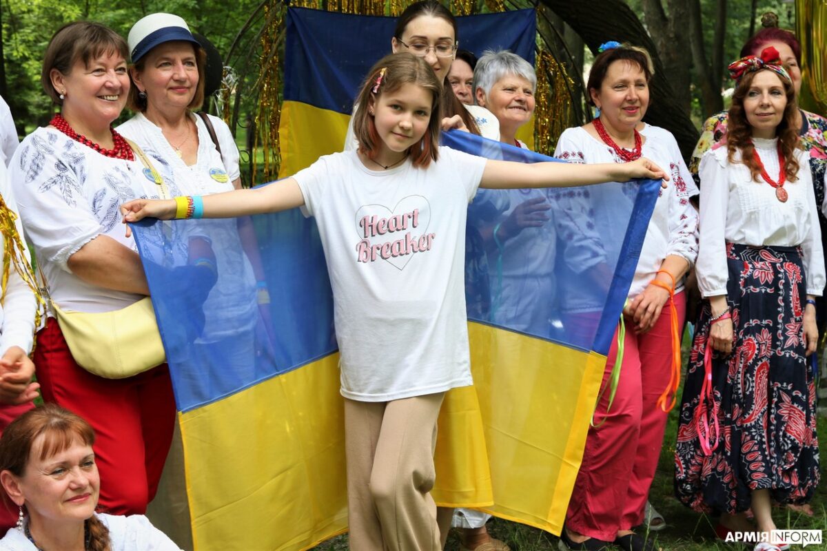 На них неможливо було не звернути уваги: яскраво вбрані в український національний одяг та із синьо-жовтими стрічками у волоссі, вони щось жваво обговорювали між собою. Ці люди співали патріотичні пісні та періодично перегукувалися нашим всепереможним гаслом: «Слава Україні! Героям Слава!».