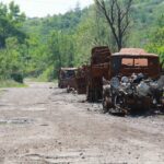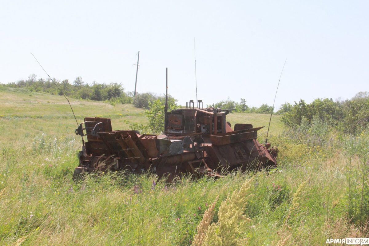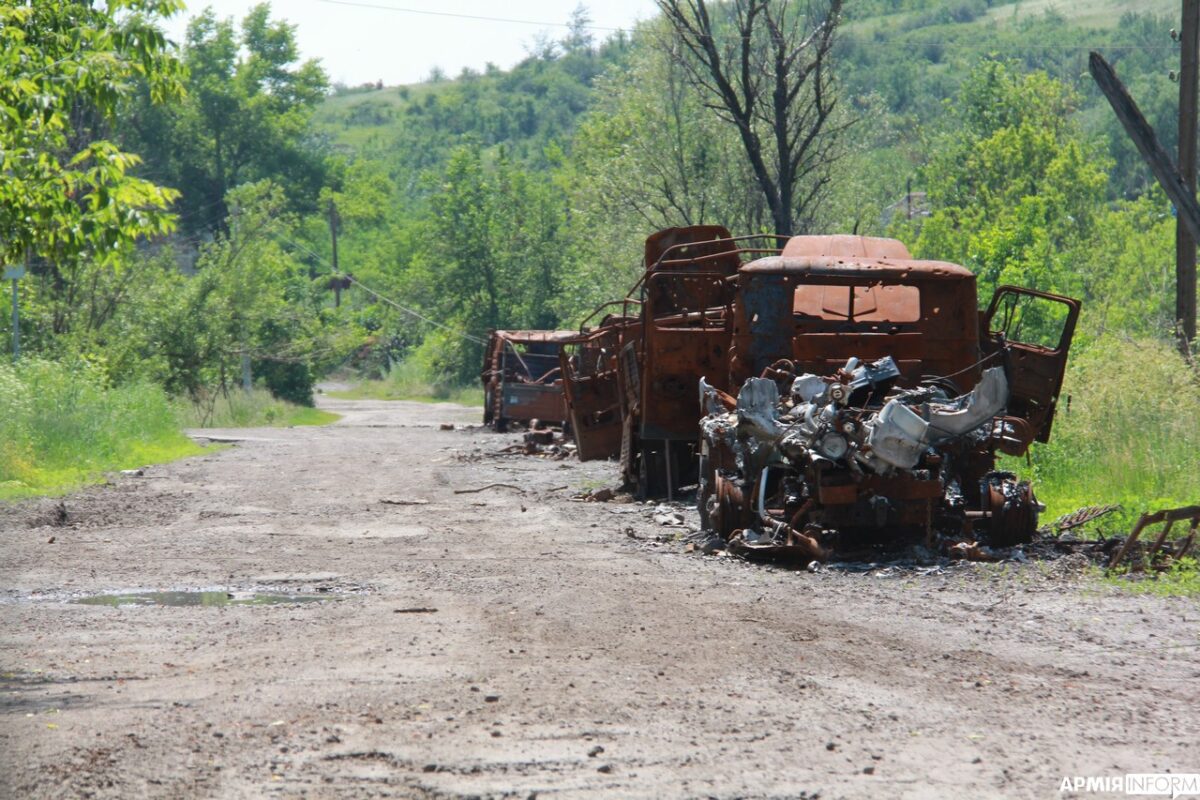 Збираючись у дорогу, ми уважно вивчили маршрут, але все одно не відбулося без сюрпризів. Останні кілометри до селища їхали ділянкою дороги із залишками асфальту, яка здавалася закинутою. По її краях подекуди валялася знищена техніка, а наприкінці я побачив цілу колону зі спалених російських військових вантажівок, знищених ще торік. Як згодом з’ясувалося, дорогою вже давно ніхто не користується, тому що вона добре прострілюється ворогом. Отже, поверталися назад вже зовсім іншим маршрутом, яким до селища доправляють гуманітарну допомогу, а правоохоронці щотижня привозять хліб.