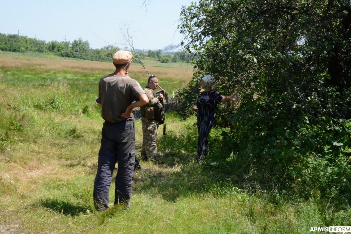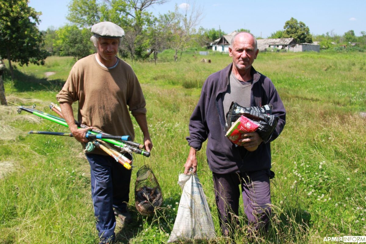 Заїхавши до селища, му зустрічаємо двох місцевих, що повертаються з риболовлі. Вони погоджуються нам розповісти про життя на лінії фронту, запрошують до своєї домівки та знайомлять із її берегинею — Ольгою.