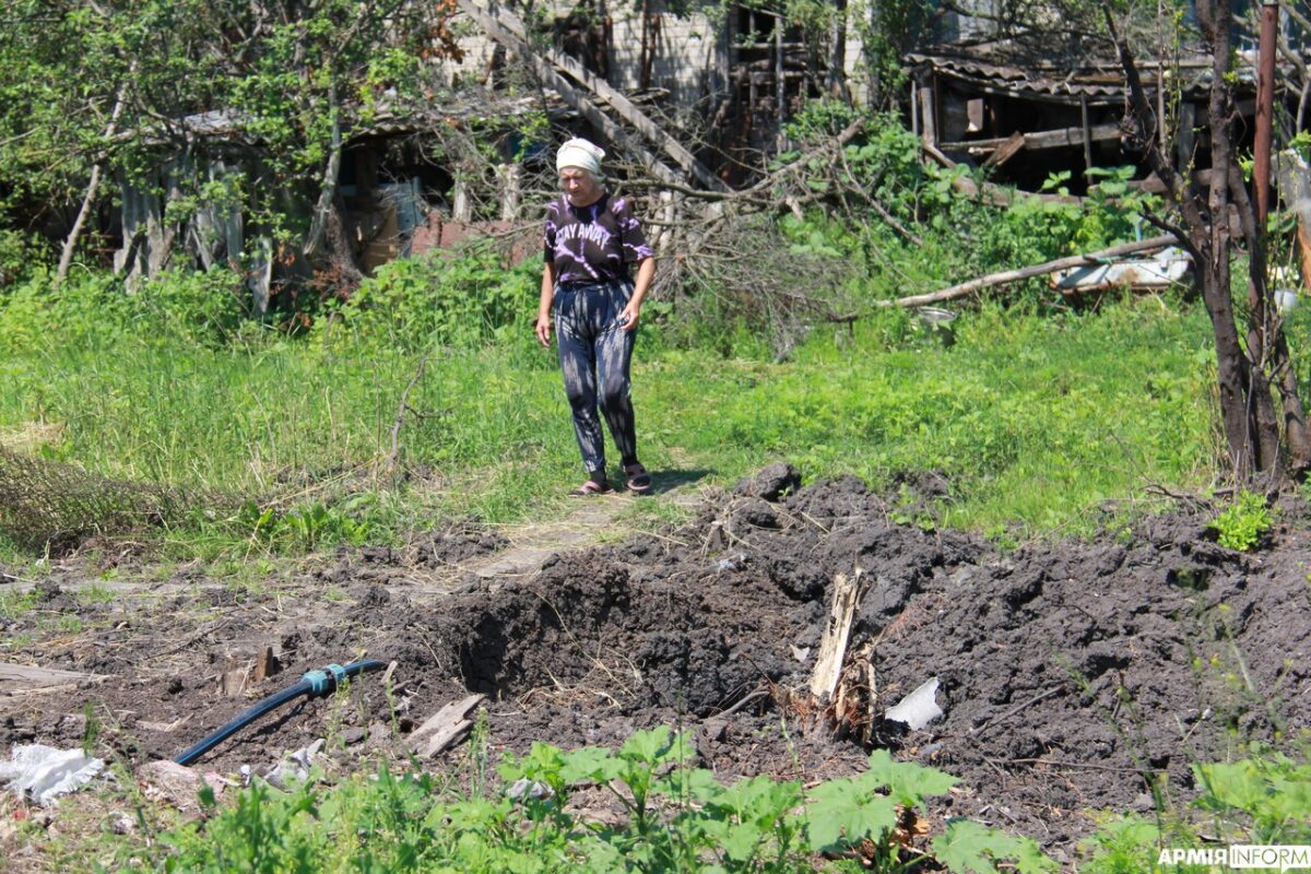 Нещодавно на подвір’я, коли там працювали Ольга та її старший син, прилетів російський 122-мм снаряд. Він зруйнував стіну сарая та зупинився неподалік від жінки, на щастя, не вибухнув. Під час огляду стало зрозуміло, що від удару зі снаряда вирвало підривник, але якась палаюча речовина пропалила її сину кофту на спині. На подив, хлопець, що ще за часів окупації зазнав уламкового поранення в ногу, не постраждав.