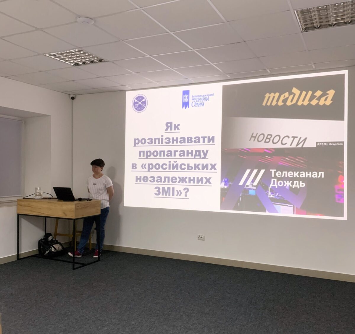 Спікерка проаналізувала роботу «ліберальних» російських ЗМІ на прикладі інформаційного телеканалу «Дождь» (заборонений в Україні та країнах Балтії. — Авт.) та інтернет-видання «Медуза».