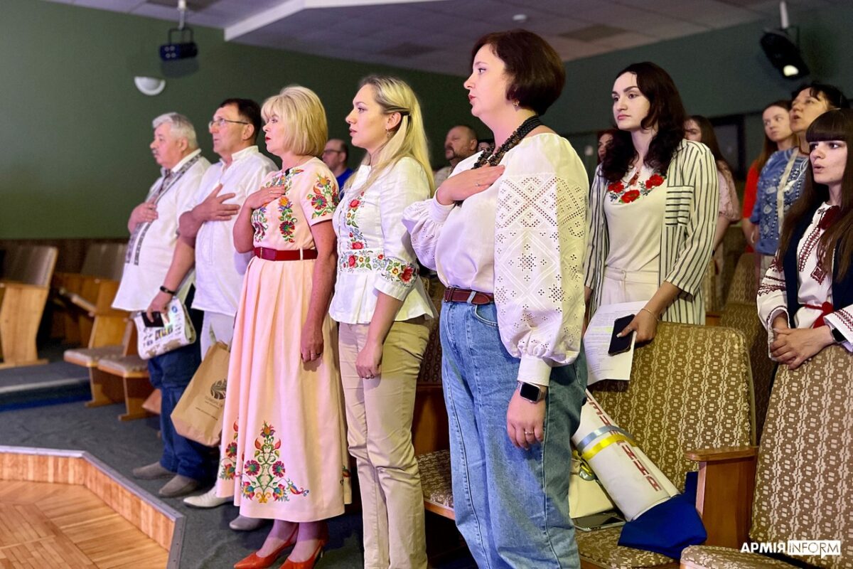 Передавали вишитий рушник майстрині на Хмельниччину директор Департаменту культури та туризму Тернопільської ОВА Світлана Байталюк, директор обласного музею національно-визвольної боротьби Тернопільщини, голова благодійного фонду «Цвіт вишиванки» Євген Філя, голова Ліги підприємців «Українська справа» Михайло Ратушняк та гостя з Рівненщини, завідувачка відділу збереження та розвитку регіональної та матеріальної культурної спадщини комунального закладу «Рівненський обласний центр народної творчості» Рівненської обласної ради, вишивальниця Юлія Гончарова.