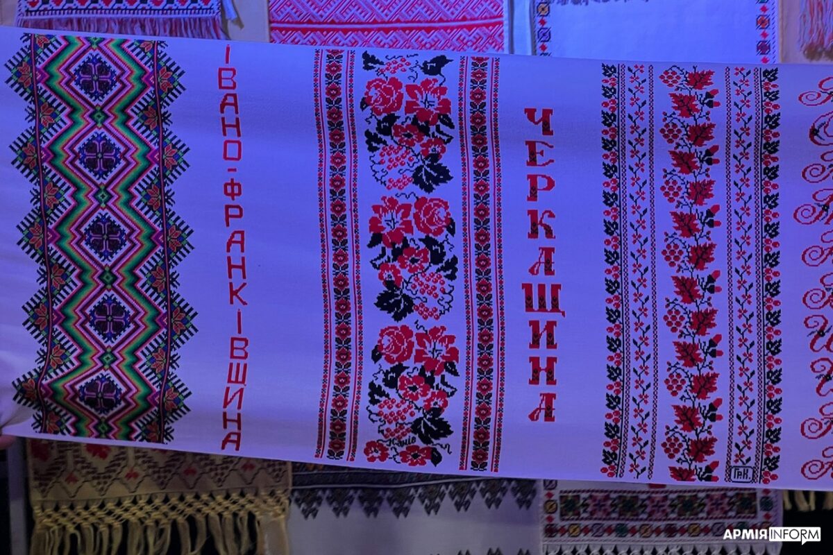 На рушнику вже відображено вишиті орнаменти Тернопільщини, Івано-Франківщини, Канади, Польщі, Німеччини, Черкащини, Полтавщини, Січеславщини, Італії, Великої Британії, Австрії, Латвії, Литви, Естонії, Львівщини, частково Криму, Волині, Рівненщини.