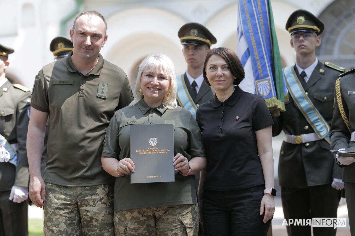 Заступник Міністра оборони України Ганна Маляр вручила випускникам курсів відповідні сертифікати та шеврони з написом «Бути поруч», який є девізом кожного капелана.