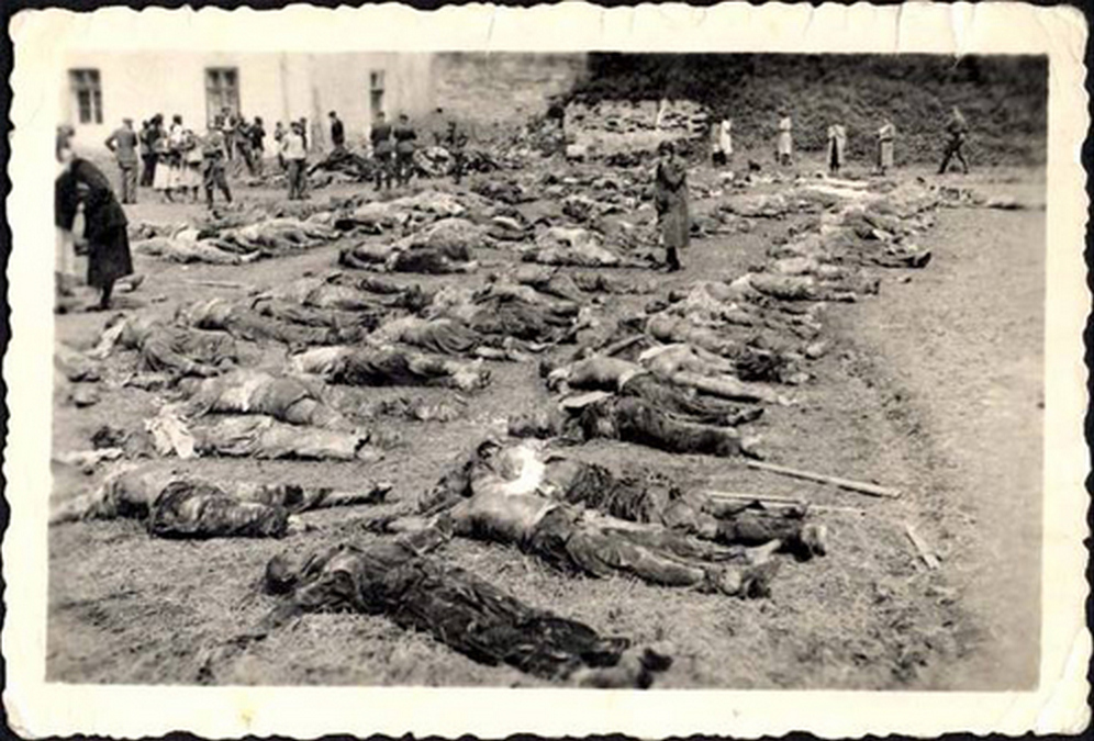 «Переступивши поріг тюремного подвір’я, ми відразу зупинилися. Чувся огидний трупний сморід. Під стіною тюрми — рядами почорнілі, розпухлі тіла розстріляних. Якісь бородаті чоловіки, хитаючись під тягарем, виносили на ношах з підвалу щораз нові трупи і клали їх поряд. Нечисленні групки заплаканих жінок. Притискаючи до носа хустинки, уважно розглядали загиблих, намагаючись впізнати своїх. Видовище було, як кажуть, не для людей зі слабкими нервами. Вражала та обставина, що перед смертю в’язнів часто піддавали садистським тортурам: знайшли камеру з живцем замурованими в’язнями, які задихнулися в кам’яному мішку».
