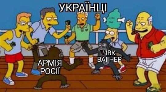 Перша асоціація, що в мене виникла, — Боги — тут українці, які з азартом і попкорном усі два дні, які тривав пригожинський бунт, спостерігали за цим дійством. Коротку його хронологію зараз описують так: «захисники росії» вирішили захопити владу в росії, через що інші «захисники росії» полетіли вбивати перших «захисників росії», але ті їх самі вбили. А «герой росії» пригожин їхав убивати «героя росії» шойгу, через що «герой росії» кадиров поїхав убивати «героя росії» пригожина. А також через це «герой росії» бортніков порушив справу проти «героя росії» пригожина, але незабаром закрив її, оскільки найголовніший «герой росії» путін спочатку гарантував, що «прєдатєлі» будуть покарані, а потім гарантував, що не будуть. А на тих найперших «захисників росії», яких убили, всім начхати. Головне, що всі — «захисники росії» і «герої росії», і можна продовжувати пишатися тим, які у росії героїчні захисники!