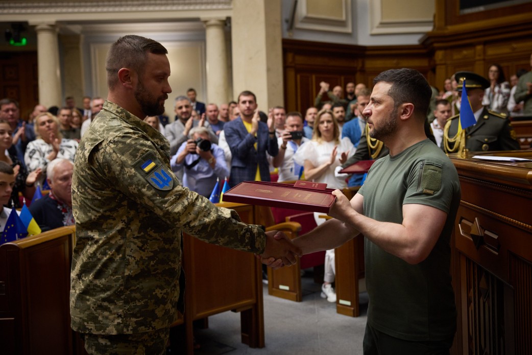 Після виступу Володимир Зеленський вручив ордени «Золота Зірка» військовослужбовцям, яким присвоєно звання Героя України, та передав ордени членам сімей воїнів, удостоєних цього звання посмертно.