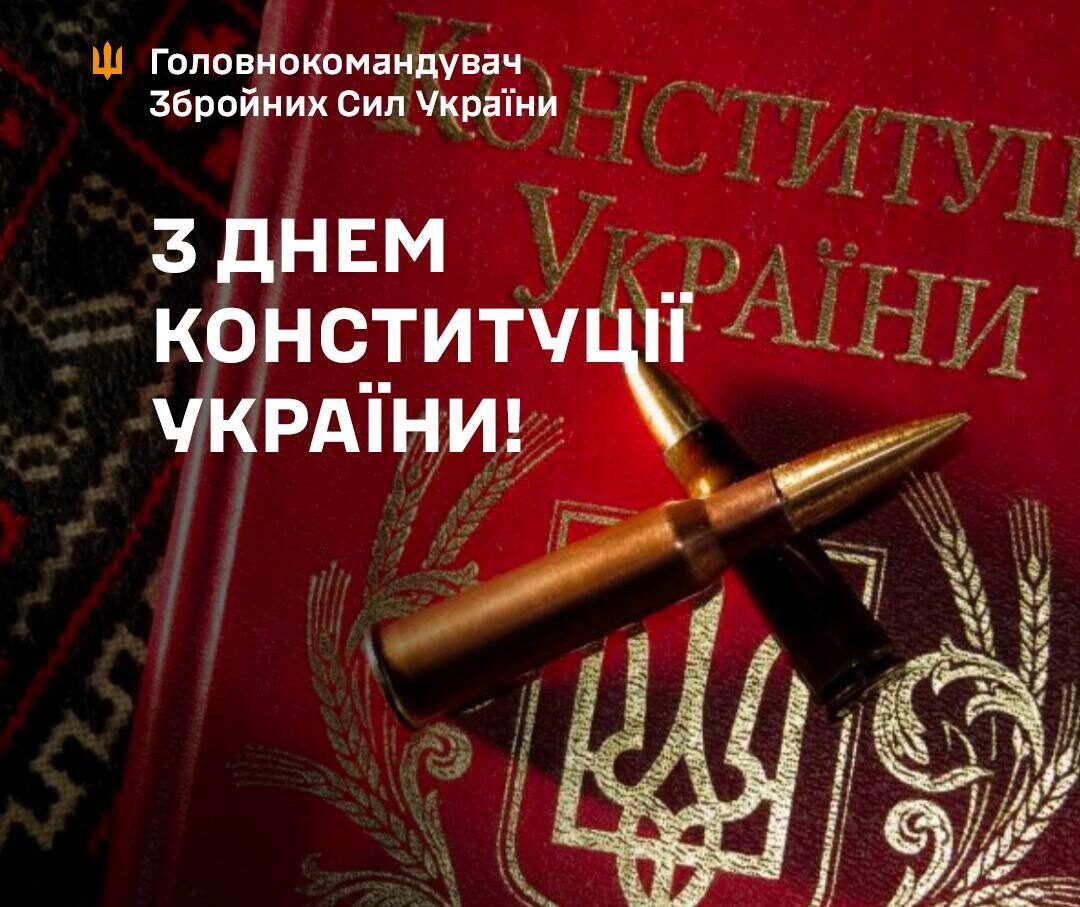 «Весь український народ демонструє непохитну вірність та міць у важкій боротьбі за свої конституційні права та свободи. Правда на нашому боці. З Днем Конституції України!» — привітав українців Головнокомандувач Збройних Сил України.
