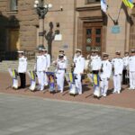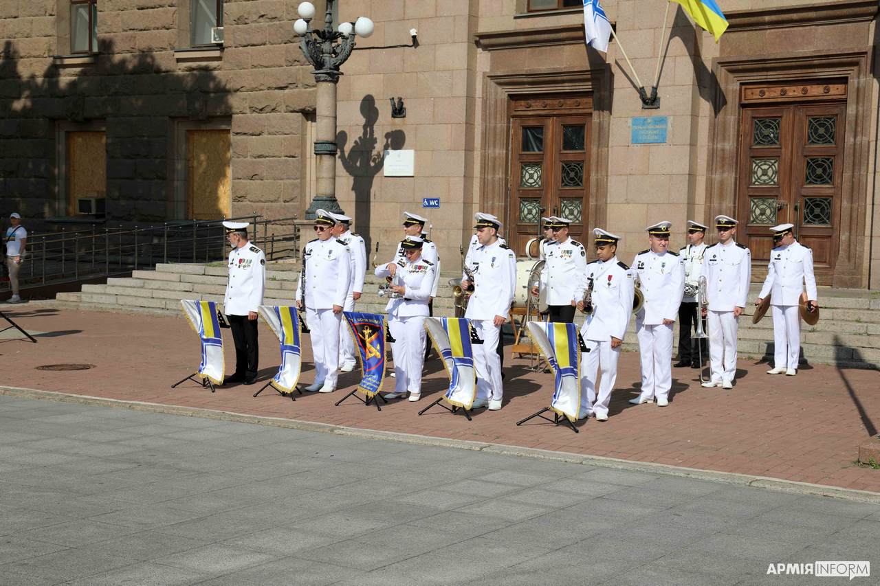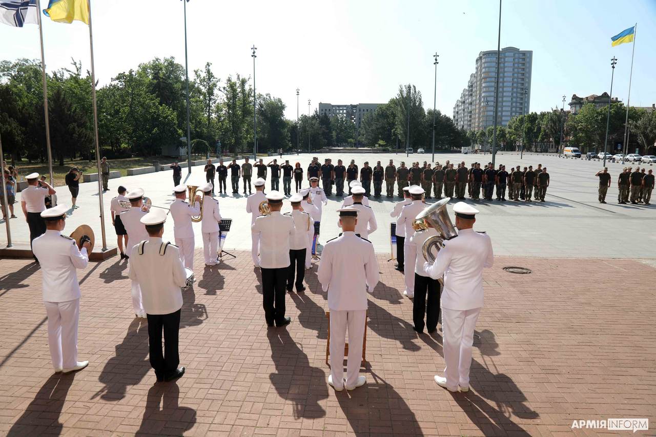 Із цієї нагоди на Соборній площі міста відбулося урочисте підняття прапора ВМС, а військовий оркестр виконав Державний гімн України.