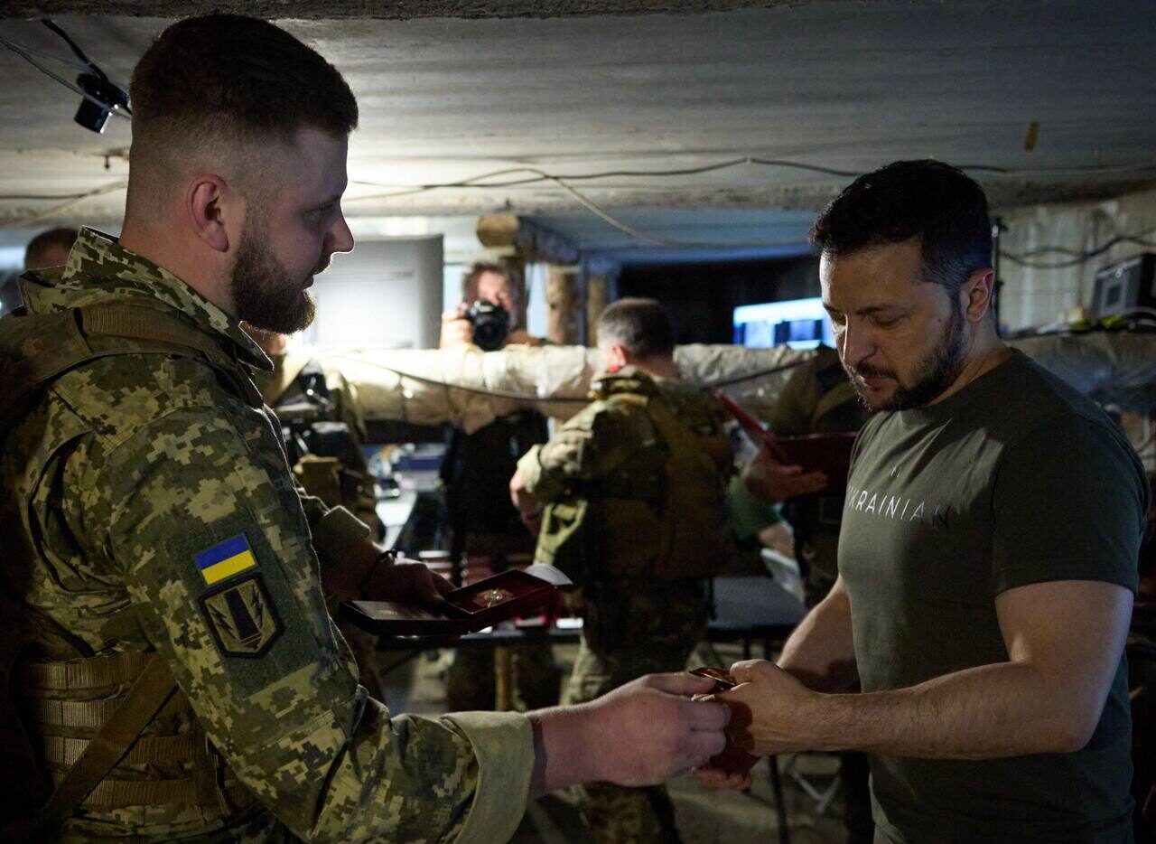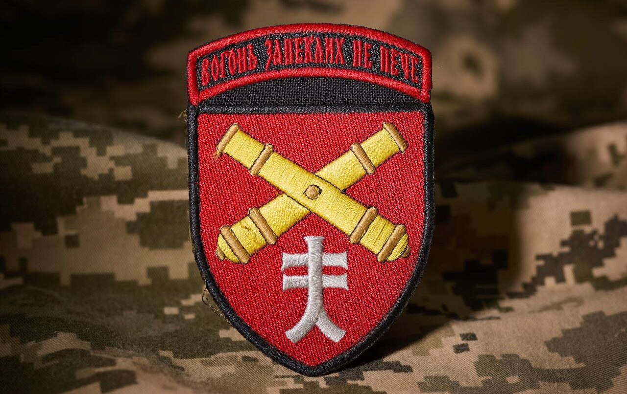 Під час поїздки Президента України Володимира Зеленського на фронт військовослужбовець з окремої артилерійської бригади імені гетьмана Данила Апостола подарував йому шеврон.