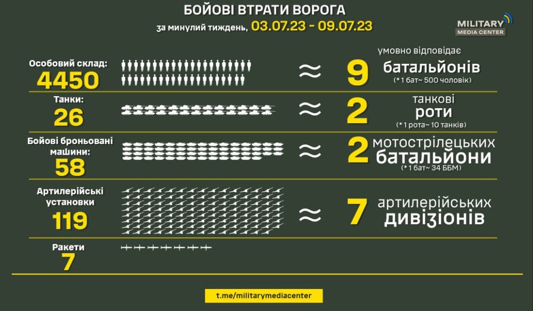 Сили оборони України за минулий тиждень з 3 липня по 9 липня знищили: