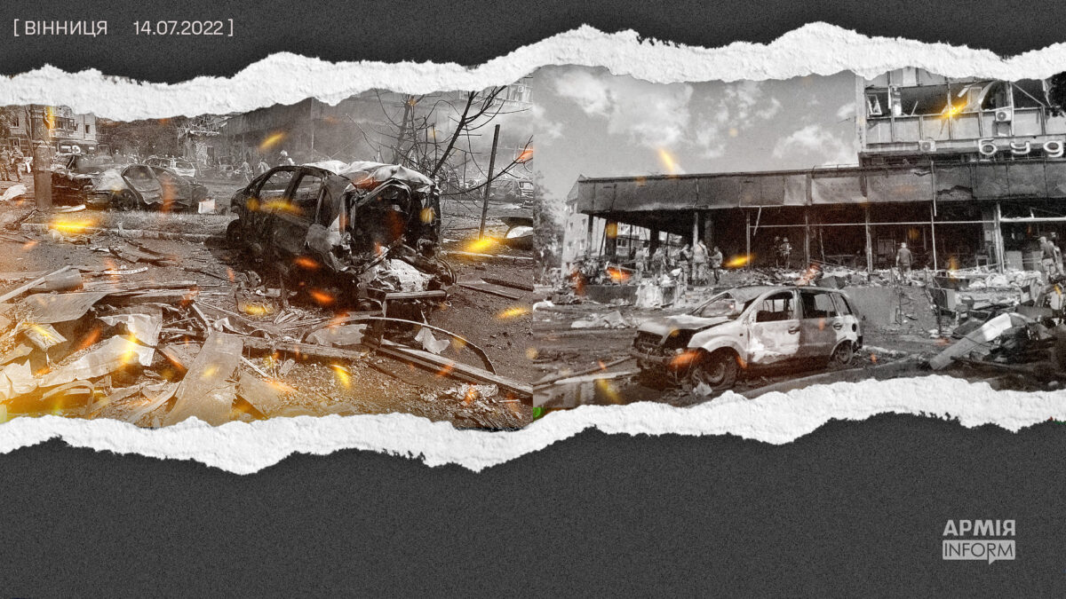 14 липня 2022 року в середмісті на площі Перемоги й у довколишніх зруйнованих будівлях — гарнізонному Будинку офіцерів, будинку побуту «Ювілейний», десятках житлових будинків довкола — загинули і зазнали поранень понад 230 українців. Це моторошне число робить удар по Вінниці одним із найкривавіших злочинів російських терористів під час агресії російської федерації проти України. Усі причетні до нього, від вищого військово-політичного керівництва російської федерації до безпосередніх виконавців, обов’язково відповідатимуть за свої вчинки.
