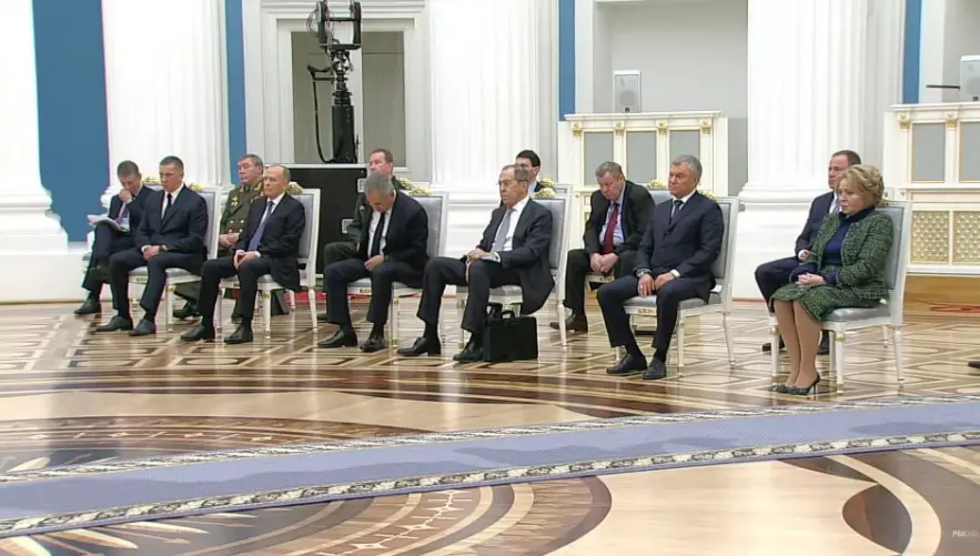 Цій здибанці «без краваток» передувало збіговисько так званої ради безпеки країни-агресора, які відбуваються регулярно по п’ятницях. Як правило, трансляції початку цих посиденьок бувають короткими та протокольними, але не цього разу.