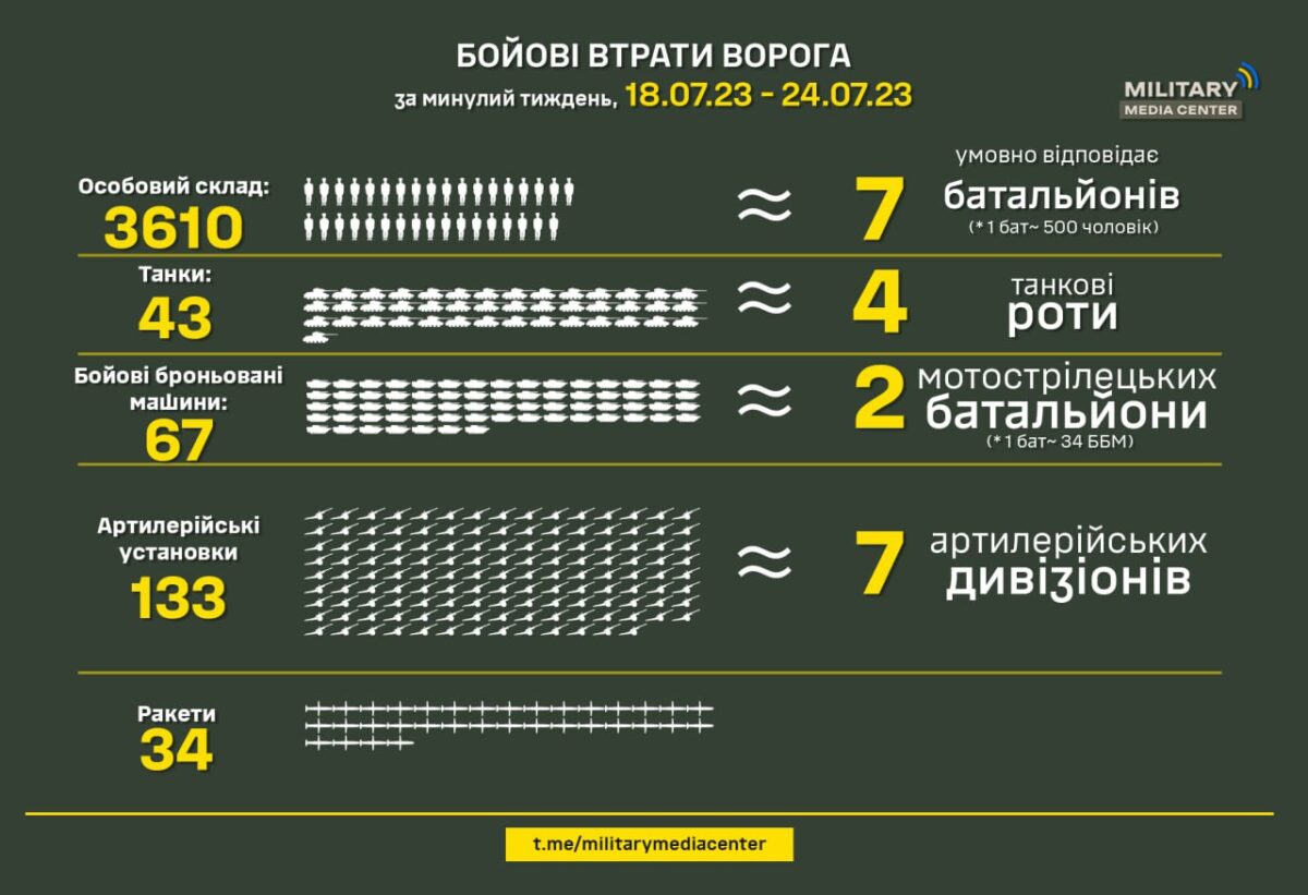 Сили оборони України за минулий тиждень, з 18 липня по 24 липня, знищили:
