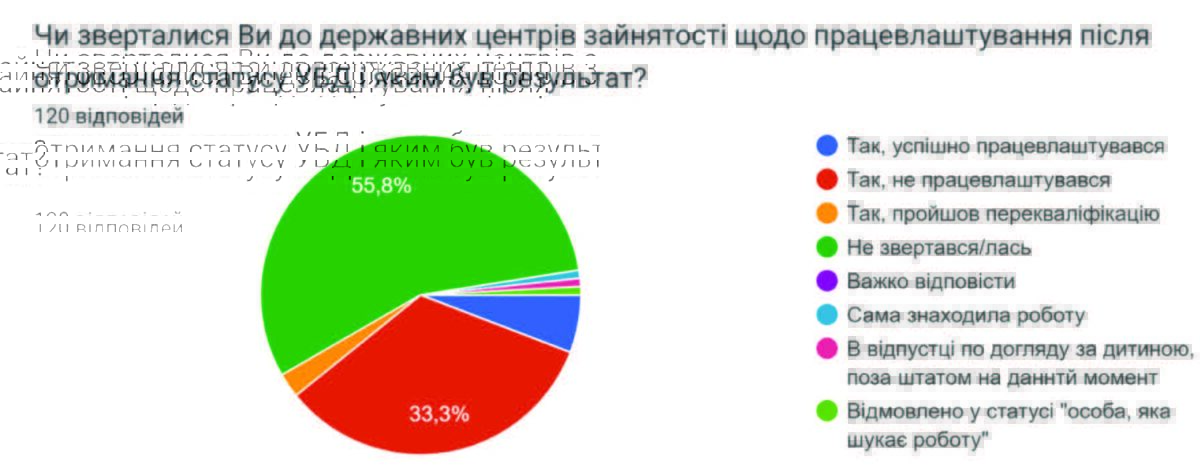 За даними дослідження, проведеного в межах Програми реінтеграції ветеранів IREX, 32 % ветеранів, які шукали роботу після військової служби, відчували небажання роботодавців наймати їх через їхній статус. Дослідження «Життя після конфлікту», проведене у 2019 році, демонструє, що 24 % екскомбатантів відчували дискримінацію через статус ветерана під час пошуку роботи, а 80 % ветеранів не вказують свій військовий досвід у резюме (дані «Центру зайнятості вільних людей»).