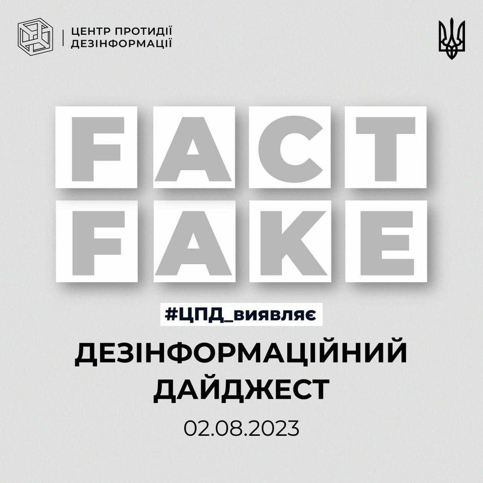 Центр протидії дезінформації протягом упродовж 2 серпня виявив такі фейки та маніпуляції: