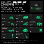 «Пташки» Армії дронів за тиждень знищили 113 одиниць російської техніки. Серед ураженого — 20 опорних пунктів, 42 бойових броньованих машини, 25 танків та інше майно росіян на мільйони доларів.