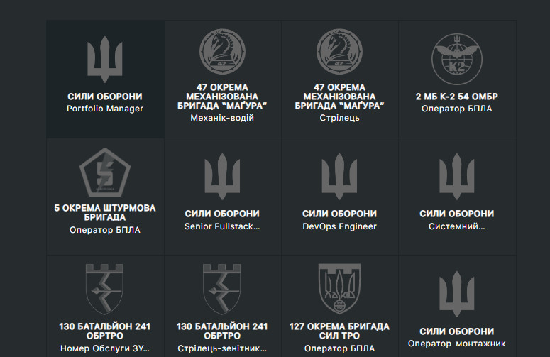 — Це важливий момент, адже ми дозволяємо кандидатам обрати не лише спеціальність, за якою служити, а й військовий підрозділ, вид або рід військ. Тобто коли це можливо, з огляду на заходи безпеки, ми вказуємо у вакансії конкретний підрозділ. У нас представлені, зокрема, 3-тя окрема штурмова бригада, 47-ма окрема механізована бригада «Маґура», різні роди та види військ. Також є вакансії від Міноборони до Офісу підтримки змін, тобто для людей, які мають відповідний досвід великих структурних змін, людей з великого бізнесу, які готові мобілізовуватися і вкладатися в нашу перемогу своїм досвідом і знаннями, реформуючи армію.