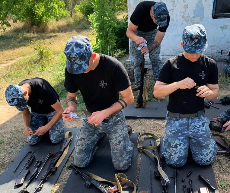 А навчальних питань на полігоні, дійсно, доводиться відпрацьовувати багато. Вчорашні школярі вже ознайомилися зі стрілецькою зброєю та правилами поводження з нею, провели навчальні стрільби, відпрацювали алгоритм дій у разі оголошення повітряної тривоги. Курсанти-моряки займали кругову оборону, пересувалися на «полі бою» із встановленням димової завіси, ретельно вивчали різні види радіостанцій та порядок й правила користування ними.