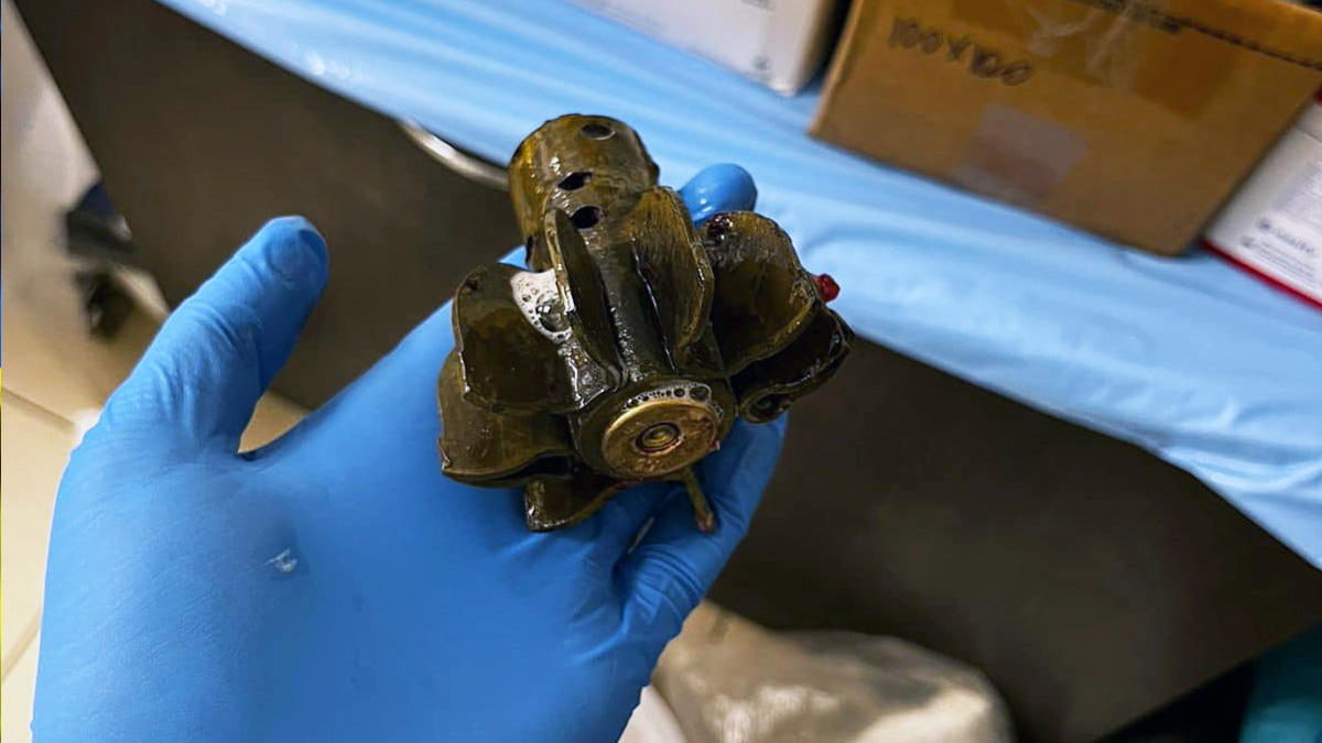 Українські військові лікарі дістали хвостовик міни з тіла військового.
