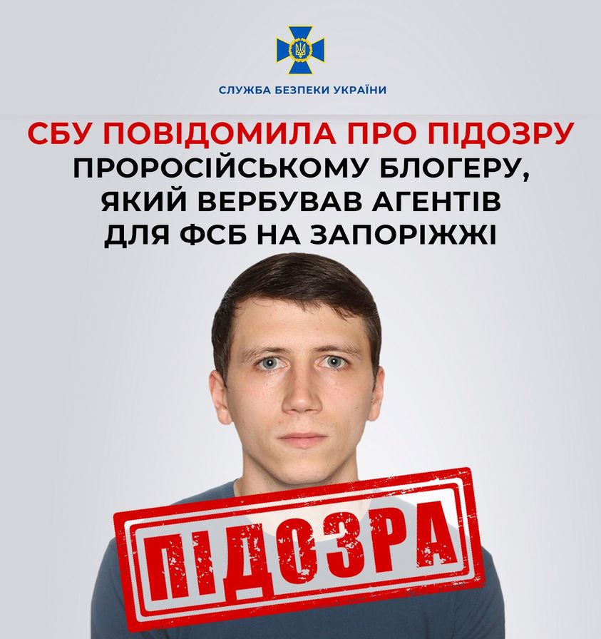 За даними слідства, резидентом викритих російських агентів є мешканець захопленого міста Василівка, який працює на фсб під виглядом місцевого блогера.