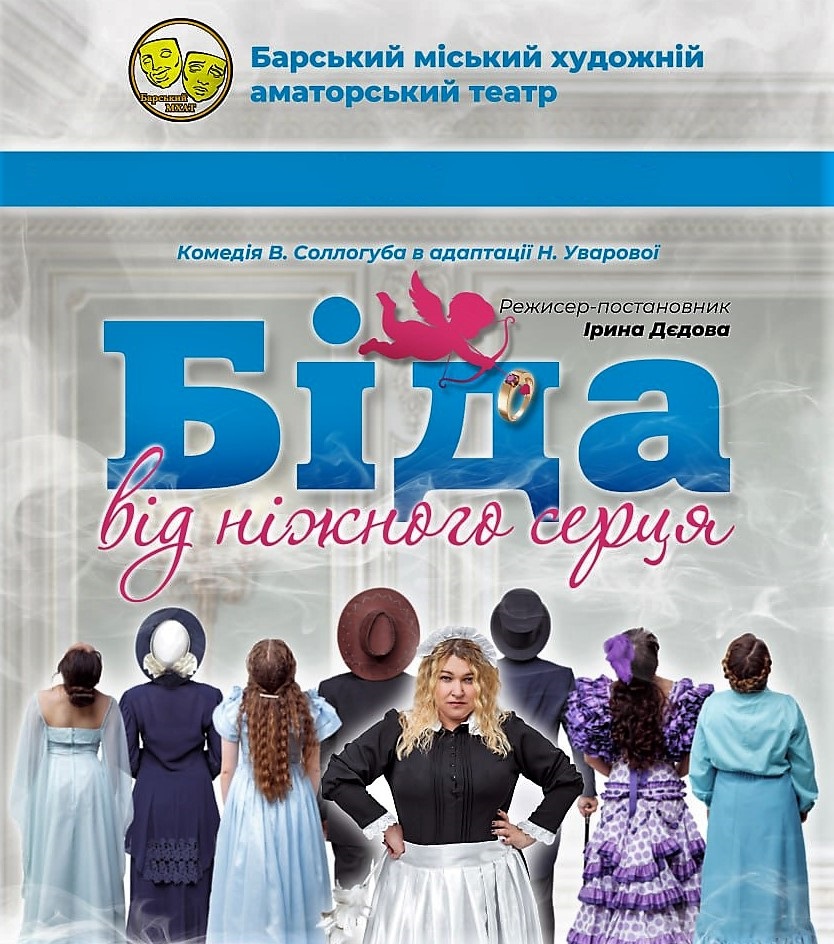 Як розповів директор Барського театру Роман Григор’єв, постановку готували близько року. Саме цю п’єсу обрали невипадково, намагаючись знайти нейтральну тематику із позитивним змістом. «Біда від ніжного серця» — це легка комедія про США 20-х років минулого століття, де син мільйонера не може визначитись, кого з трьох красунь-дівчат взяти за наречену.
