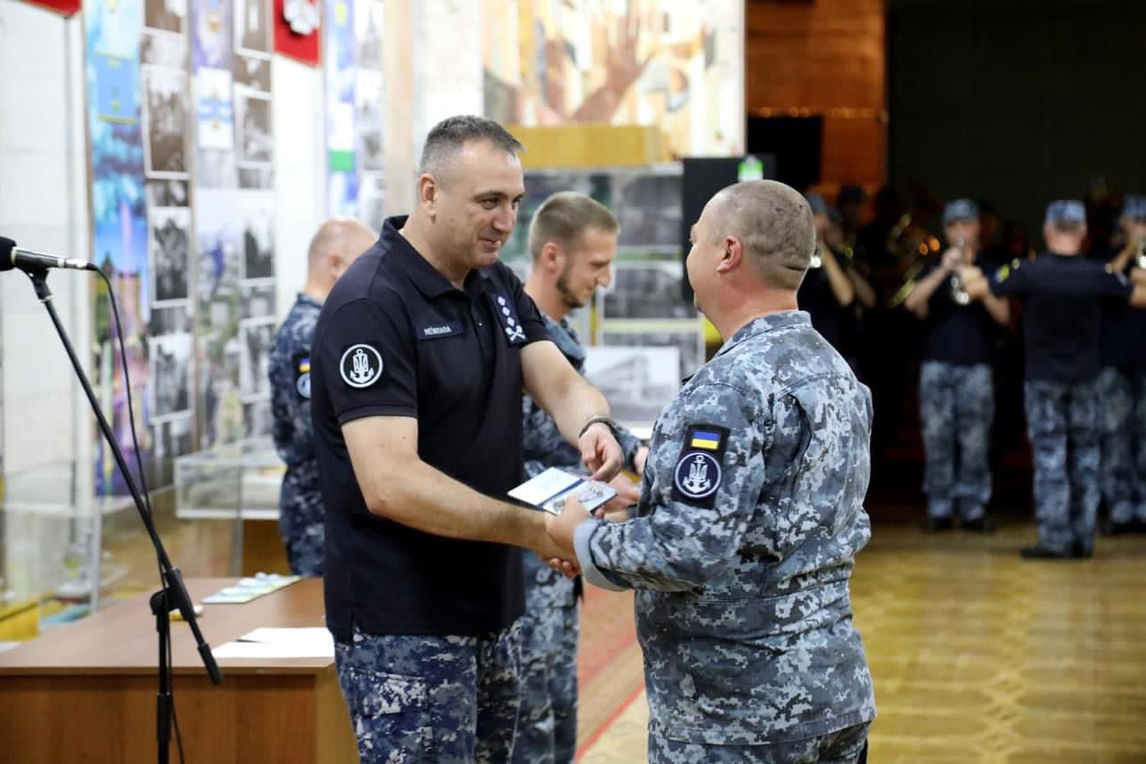 Далі в урочистій обстановці від імені Міністра оборони та Головнокомандувача ЗС України за значні заслуги в забезпеченні обороноздатності України, зміцненні національної безпеки й бездоганну військову службу велику групу з-поміж офіцерів і старшин Українського флоту було нагороджено медалями «Захиснику України», «Хрест Військово-Морських Сил», відзнакою «Вогнепальна зброя» та почесними нагрудними знаками «Срібний хрест» і «Хрест Військова честь».