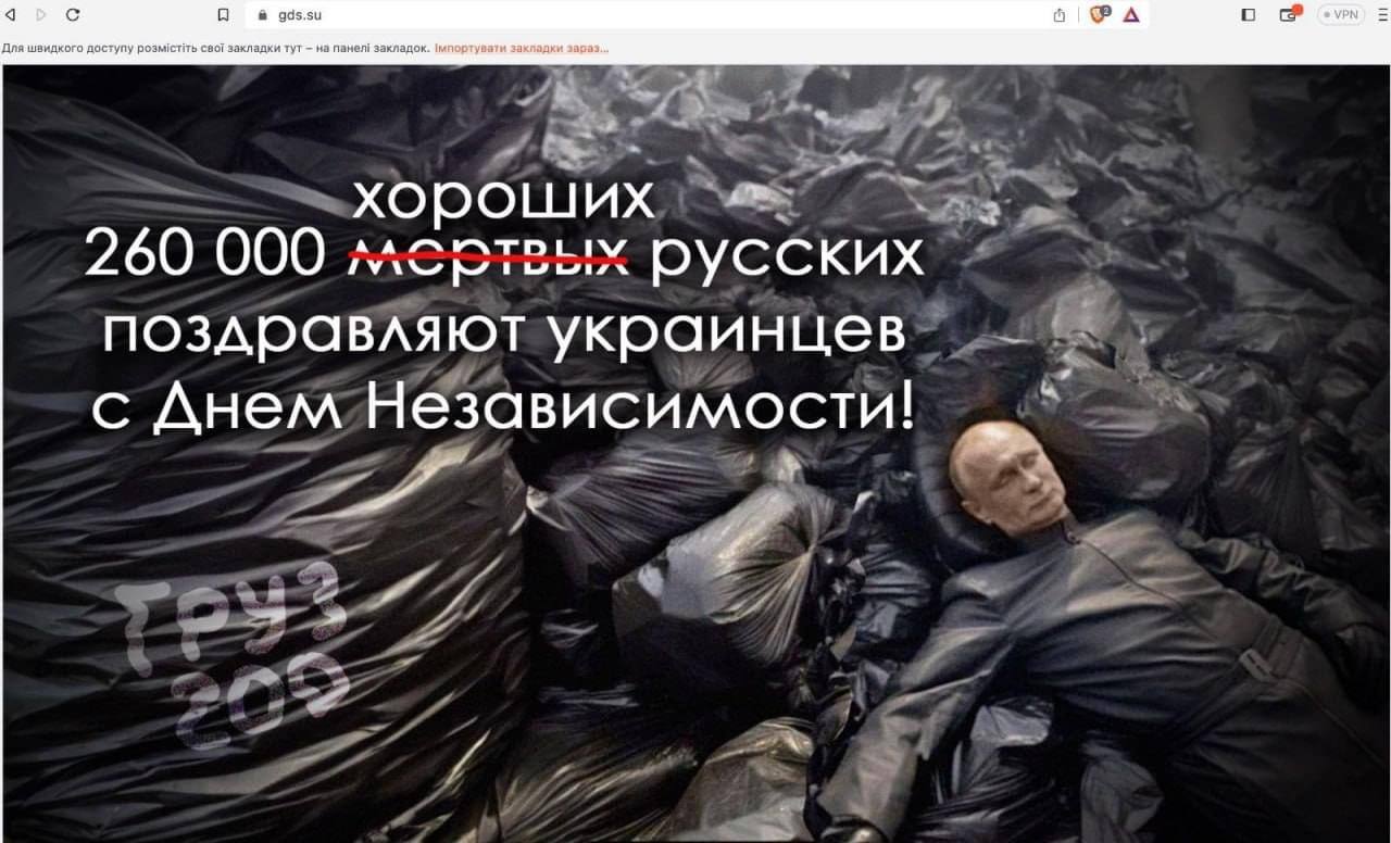 «Так військові хакери привітали росіян з Днем Незалежності України.