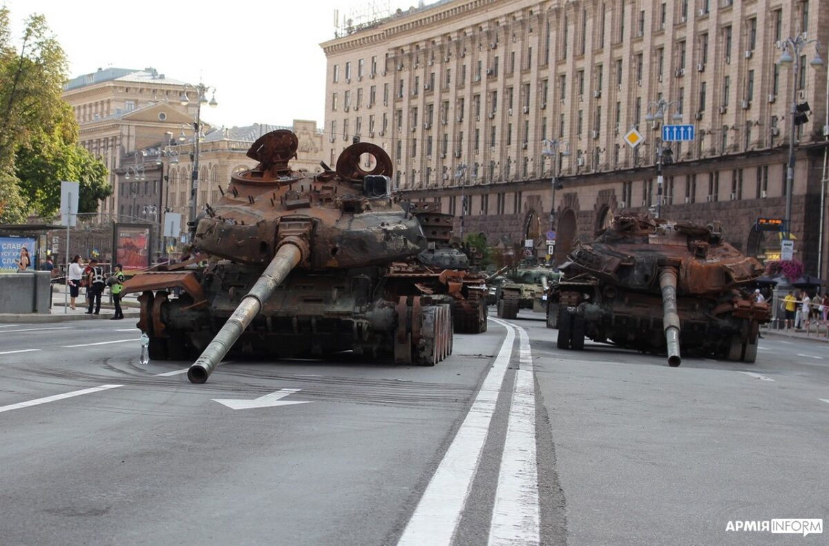 Справді, поміж представлених цьогоріч на Хрещатику зразків техніки окупанта є чимало машин у цілком придатному для подальшого використання стані. Зокрема, танків та САУ. Загалом, на виставці вже виставлені сучасні модифікації аналоговнетної рособоронки і «гордість росармії» танки Т-80 БВМ та Т-72 Б3, рідкісна САУ 2С34 «Хоста» (модифікована «Гвоздика», їх у росіян не більш ніж пів сотні) та сорокатонна САУ 2С19 «Мста-С». Також у «парадних колонах» є практично вся лінійка піхотної бронетехніки — від БТР до «Тигрів», «Рисів» і тому подібних «Тайфунів», а також уламки ракетних боєприпасів, якими російські окупанти тероризують Україну.