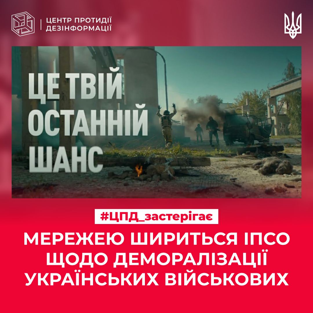 У мережі поширюється пропагандистське відео під назвою «Це твій останній шанс», у якому українських захисників закликають здатись у полон, аби зберегти життя. При цьому, ворожі інформаційні ресурси намагаються створити уявлення, що ролик нібито походить з України. Для досягнення цієї мети, навіть залучили україномовного диктора.