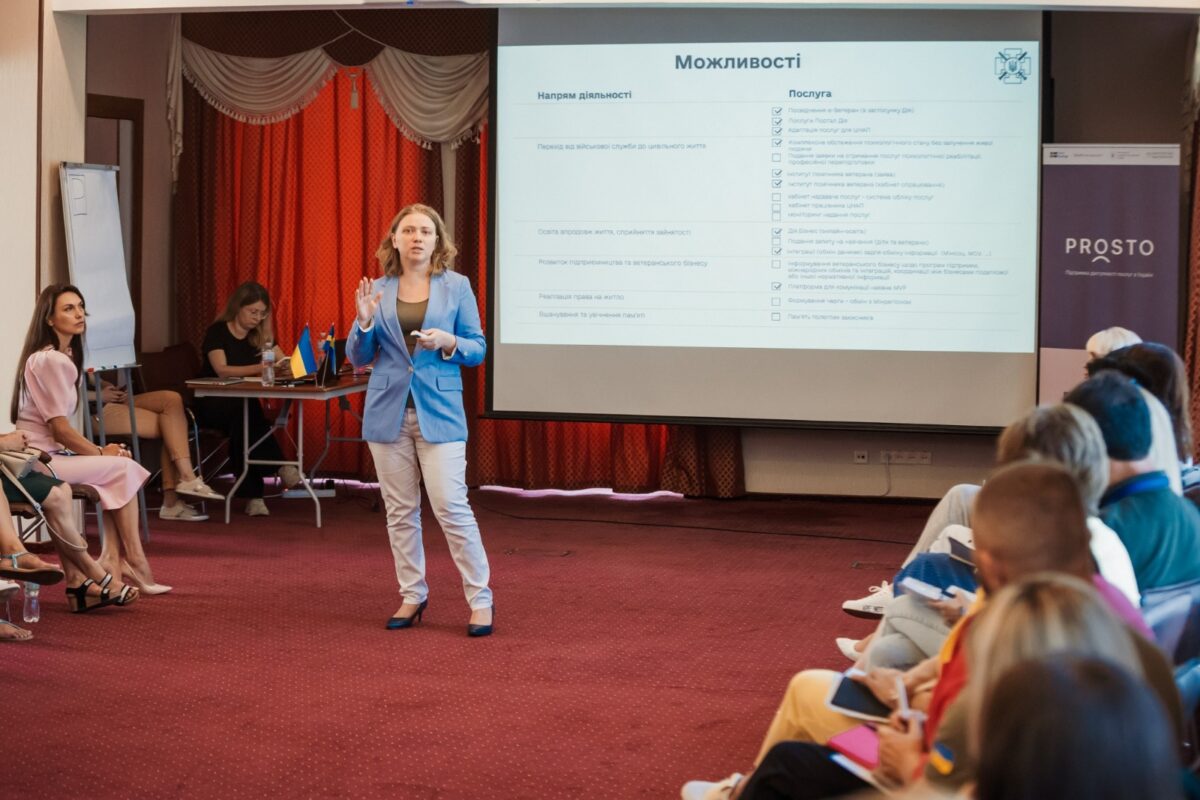 «Ми бачимо широкий спектр завдань, які необхідно вирішити для надання ветеранам якісних послуг. Запровадження в ЦНАП єдиної точки входу для отримання послуг за ветеранським напрямом — дуже масштабний проєкт, який є основним пріоритетом у нашій роботи. Спільно із практиками, експертами й донорами працюємо над розробкою механізмів, які створюватимуть ефективну систему, релевантну реальним запитам і потребам», — наголосила під час виступу Тетяна Калита.