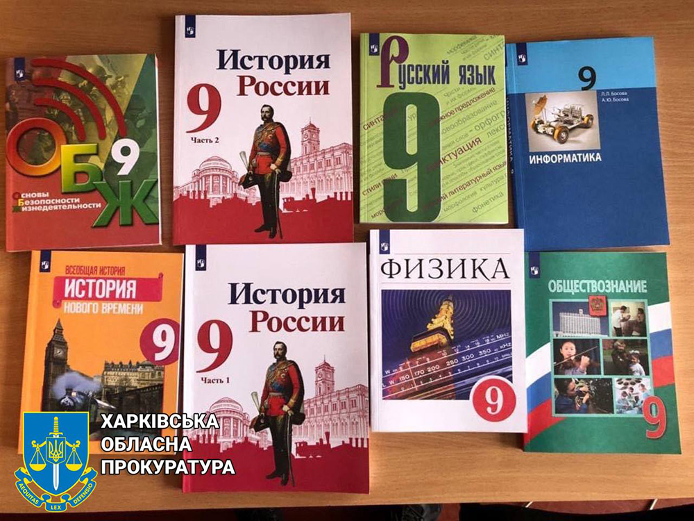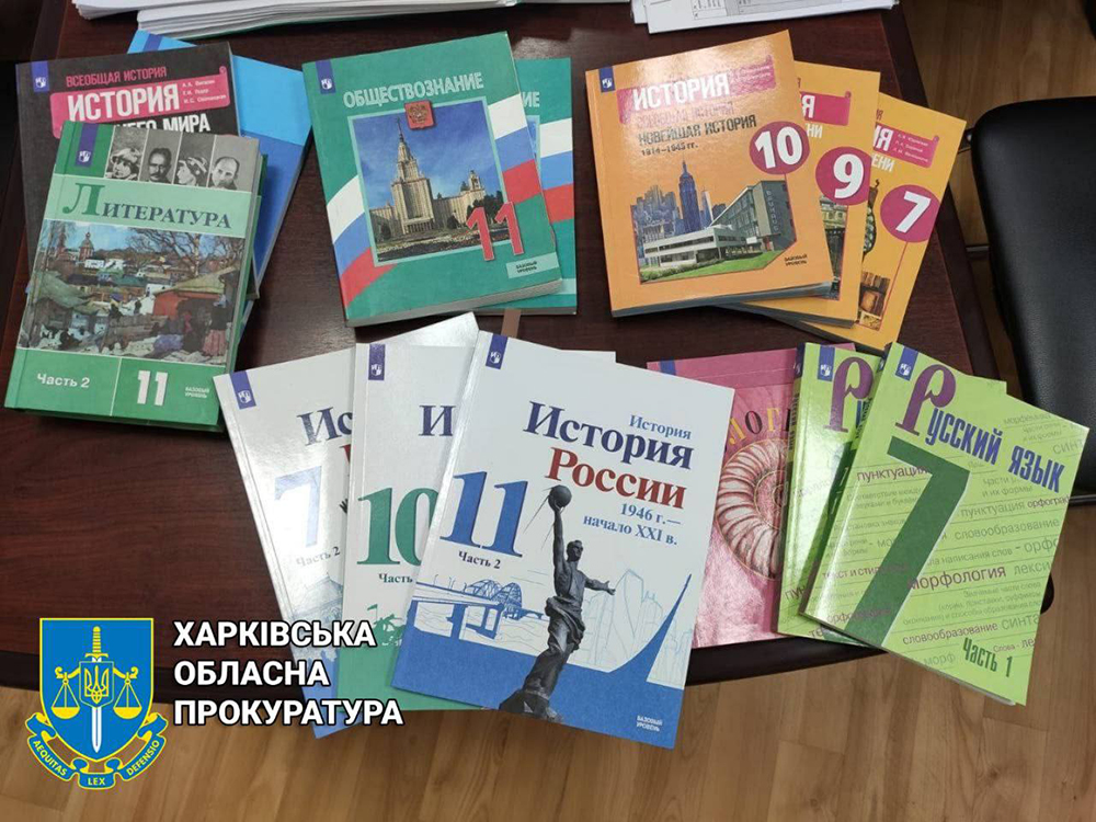 Після визволення більшої частини тимчасово окупованої території Харківської області у багатьох навчальних закладах українські правоохоронці знайшли тисячі примірників російських підручників, за якими загарбники збирались навчати українських дітей. Найбільшу увагу українців привертає російська шкільна навчальна література з історії — на тлі переважно нейтральних посібників з точних та природничих дисциплін вона вражає своєю заідеологізованістю та неподоланним неоімперським світоглядом.