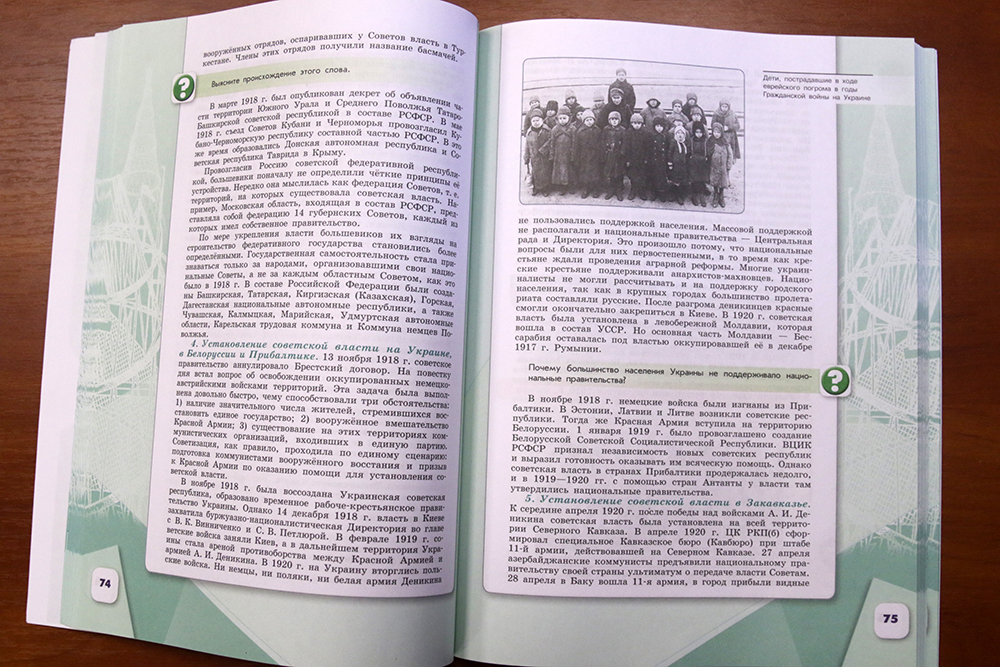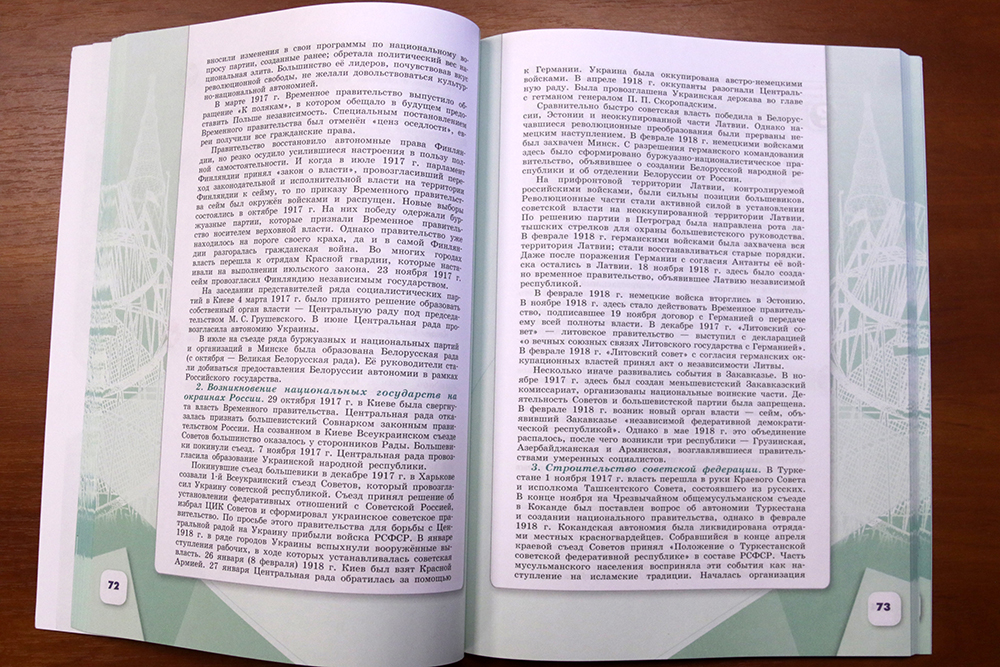 Для навченого на такому підручнику російського школяра виникнення «на окраинах россии» під час революційних подій 1917–1921 років національних держав, зокрема й Української Народної Республіки, видається чимось дивним і незрозумілим. Звідки взялись якісь українці, яких не було перед тим майже півтора століття? Чого вони хочуть? Не інакше як їхній рух є маргінальними потугами купки відірваної від народних мас інтелігенції, яка продалася антиросійським силам у цілому й австрійському генштабу зокрема.