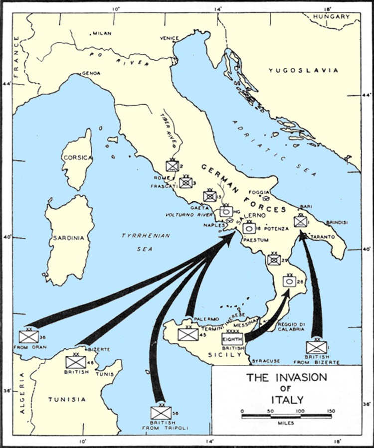 80 років тому, 3 вересня 1943 року, війська союзників по Антигітлерівській коаліції розпочали десантну операцію з висадки на узбережжі Італії. Після успіху операції «Хаскі» з оволодіння Сицилією, яка завершилась 17 серпня 1943 року встановленням контролю над розташованим на крайньому північному сході острова містом Мессіна, десантування на материк було питанням часу. Двох тижнів виявилось достатньо для того, щоб спланувати й підготувати висадку англійських та американських військ на Апеннінський півострів у межах окремих десантних операцій «Бейтаун», «Слепстік» та «Аваланч».