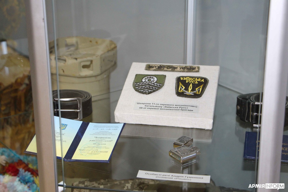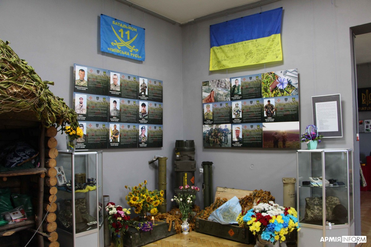 Саме Тетяна, вдова Ігоря Гудзенка на псевдо «Вовк», і очолила збір інформації про бійців механізованої роти 11-го омпб «Київська Русь». Зібраний матеріал і став основою цієї експозиції.