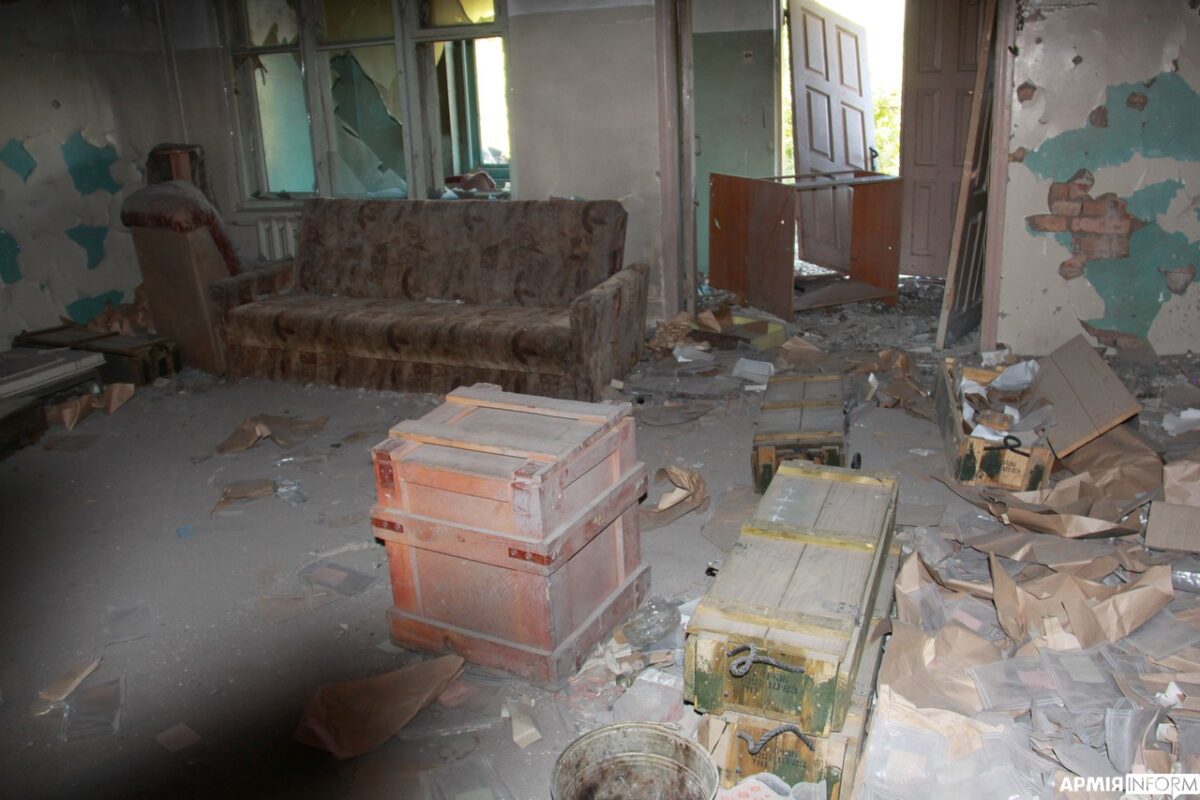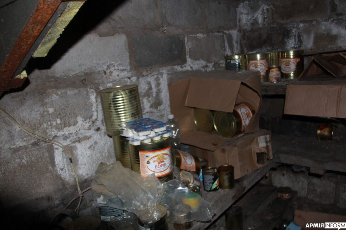 Інші будинки виглядали менш закинутими та зберігали у собі залишки «руцького міру» у вигляді контейнерів від протипіхотних мін ПОМ-2, боєприпасів та сміття. Також у одному з підвалів ми виявили залишки колишнього продовольчого складу росіян, щоправда, смерділо там, як у морзі.