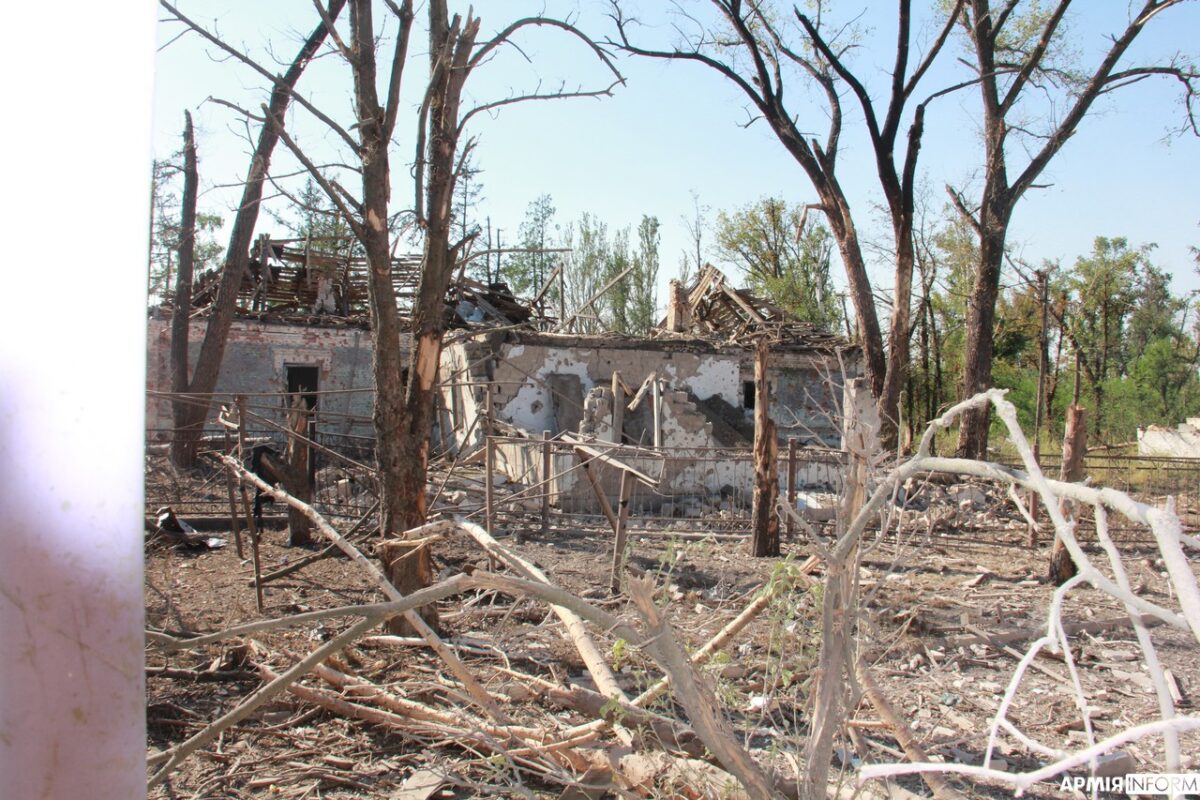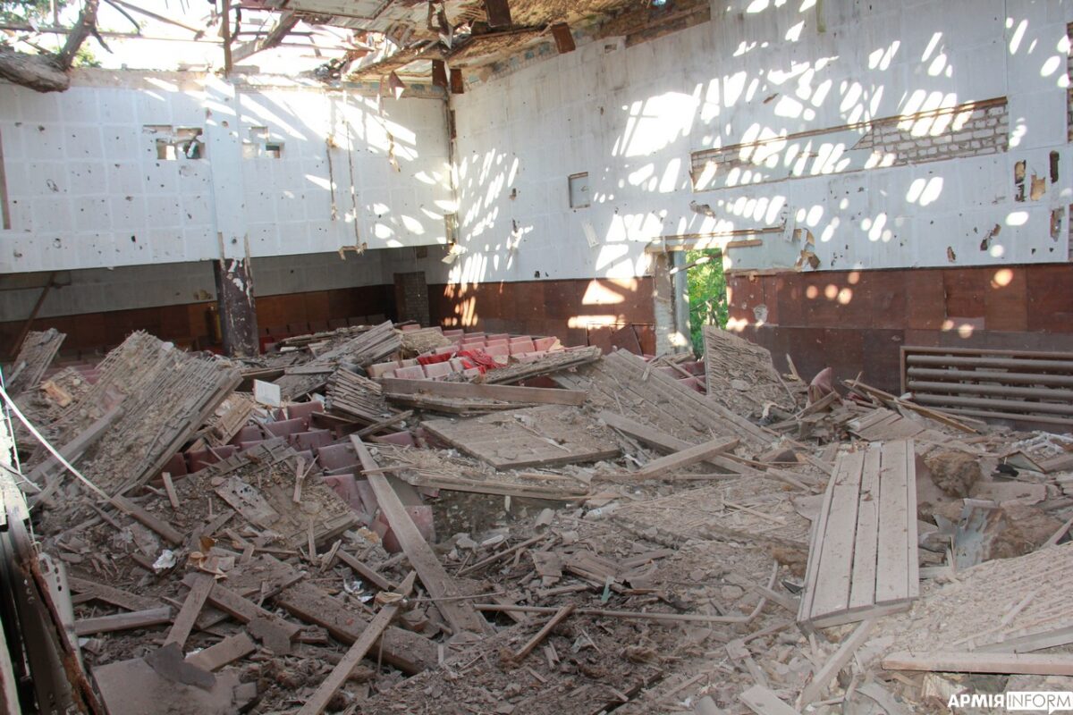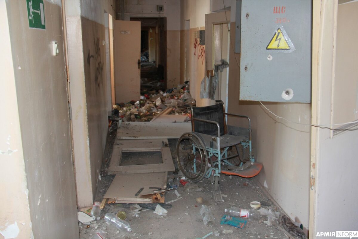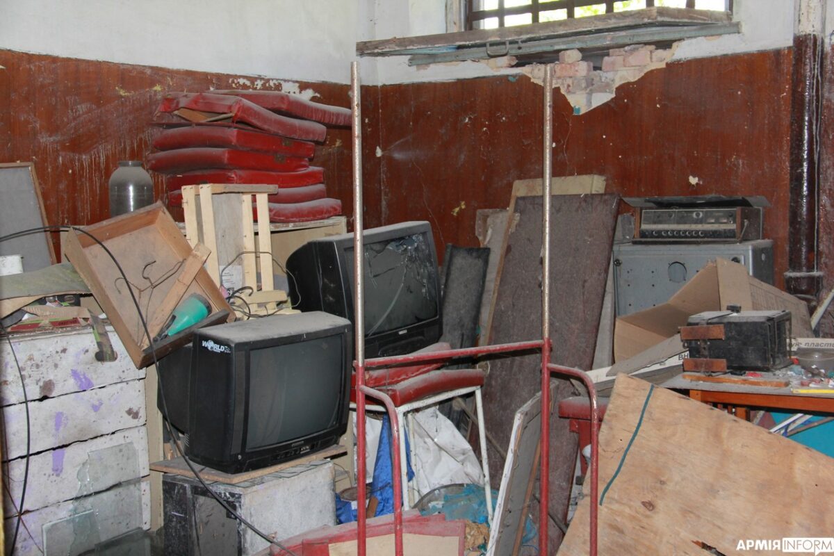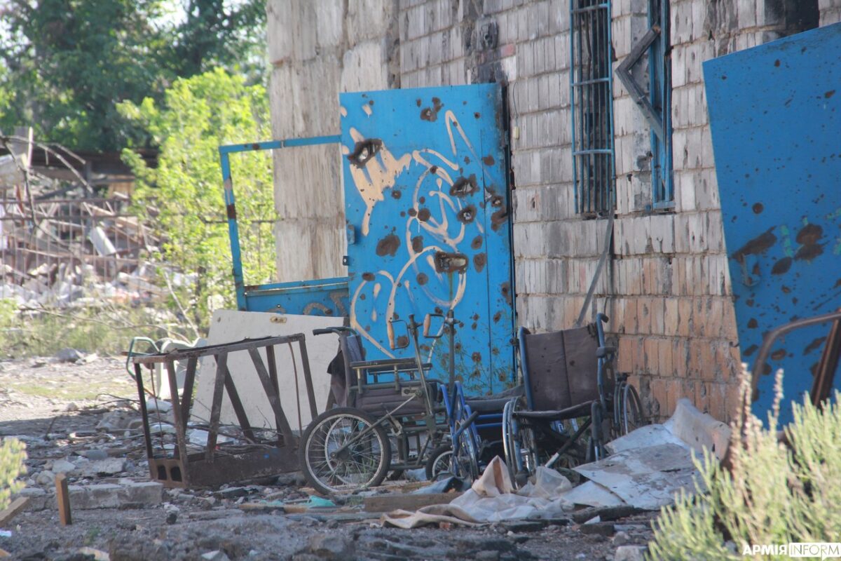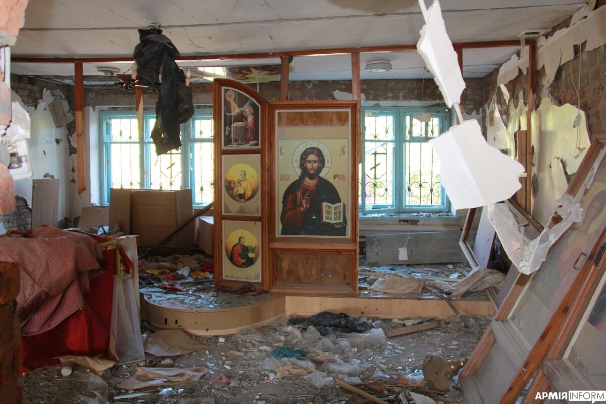 Окремо хочеться зупинитися на колишньому будинку для людей похилого віку. За мирних часів тут у комфортних умовах мешкало до двохсот осіб. Наразі це цілковита руїна, у якій свого часу перебували російські мінометники та інші підрозділи ворога. «Духовні скрепи» не завадили росіянам знищити та розграбувати невеличкий храм, який також був обладнаний у цьому будинку.