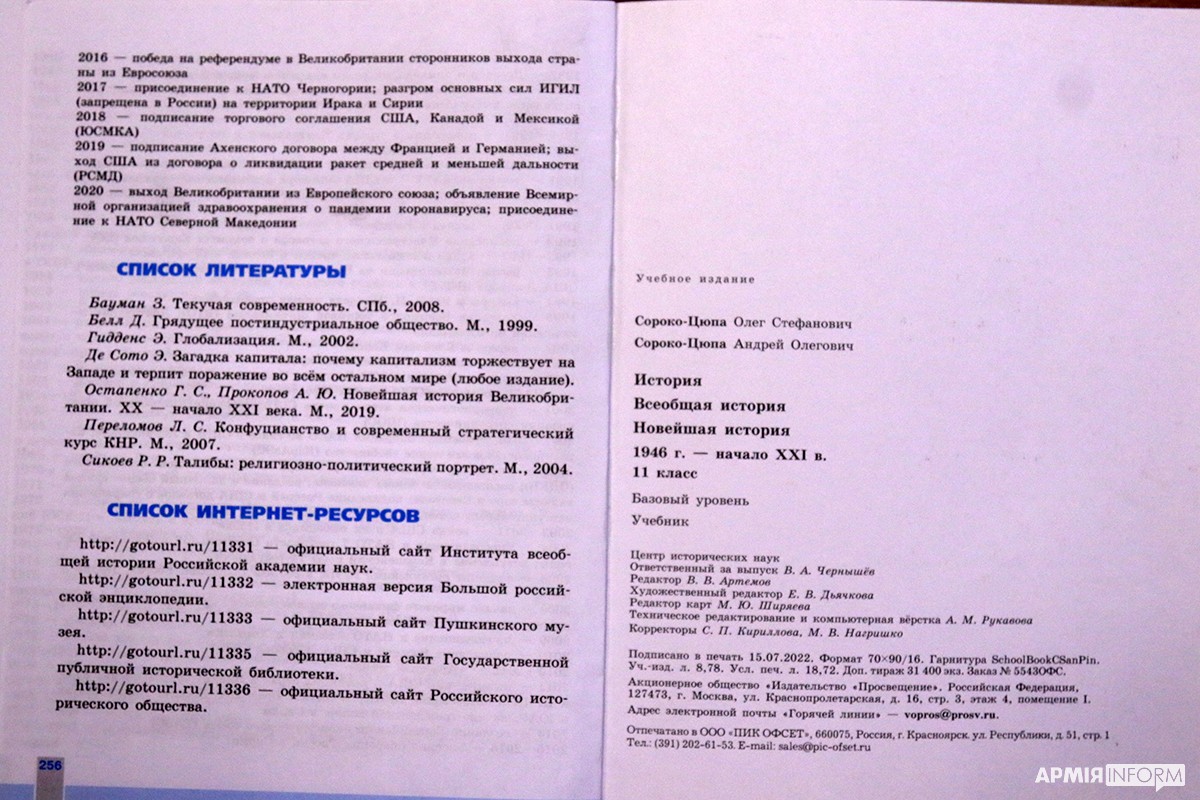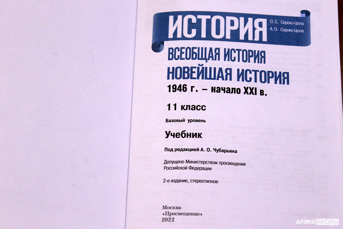 АрміяInform вже публікувала огляд лінійки підручників з історії росії для 6–11 класів загальноосвітньої школи, зокрема й підручника для 11 класу, за якими російські окупанти та колаборанти збирались навчати українських школярів. Тоді ми констатували відсутність у підручниках об’єктивного наукового погляду на історію України та сліпе слідування наративам російської державної пропаганди, особливо наочне в останньому параграфі «російська федерація у 2012–2022 роках» підручника для 11 класу.