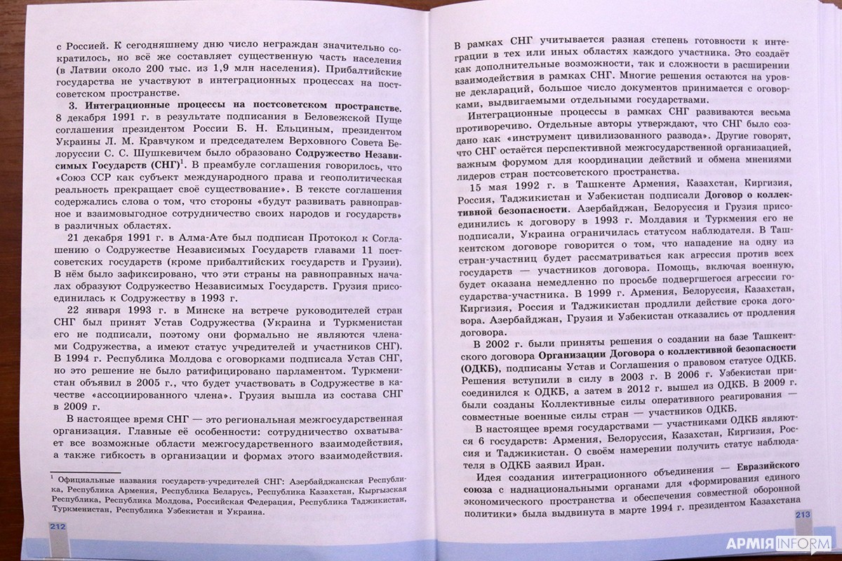 У параграфі взагалі практично повністю відсутня інформація про внутрішню історію незалежних держав, які виникли внаслідок розпаду срср. Чим відрізняються для авторів, а слідом за ними і для школяра-одинадцятикласника Україна, Грузія, Білорусь, Казахстан та інші держави на різних етапах своєї новітньої історії — на початку 1990 років, на межі 1990 і 2000 років, у перше десятиліття 2000 і у 2010 роки?