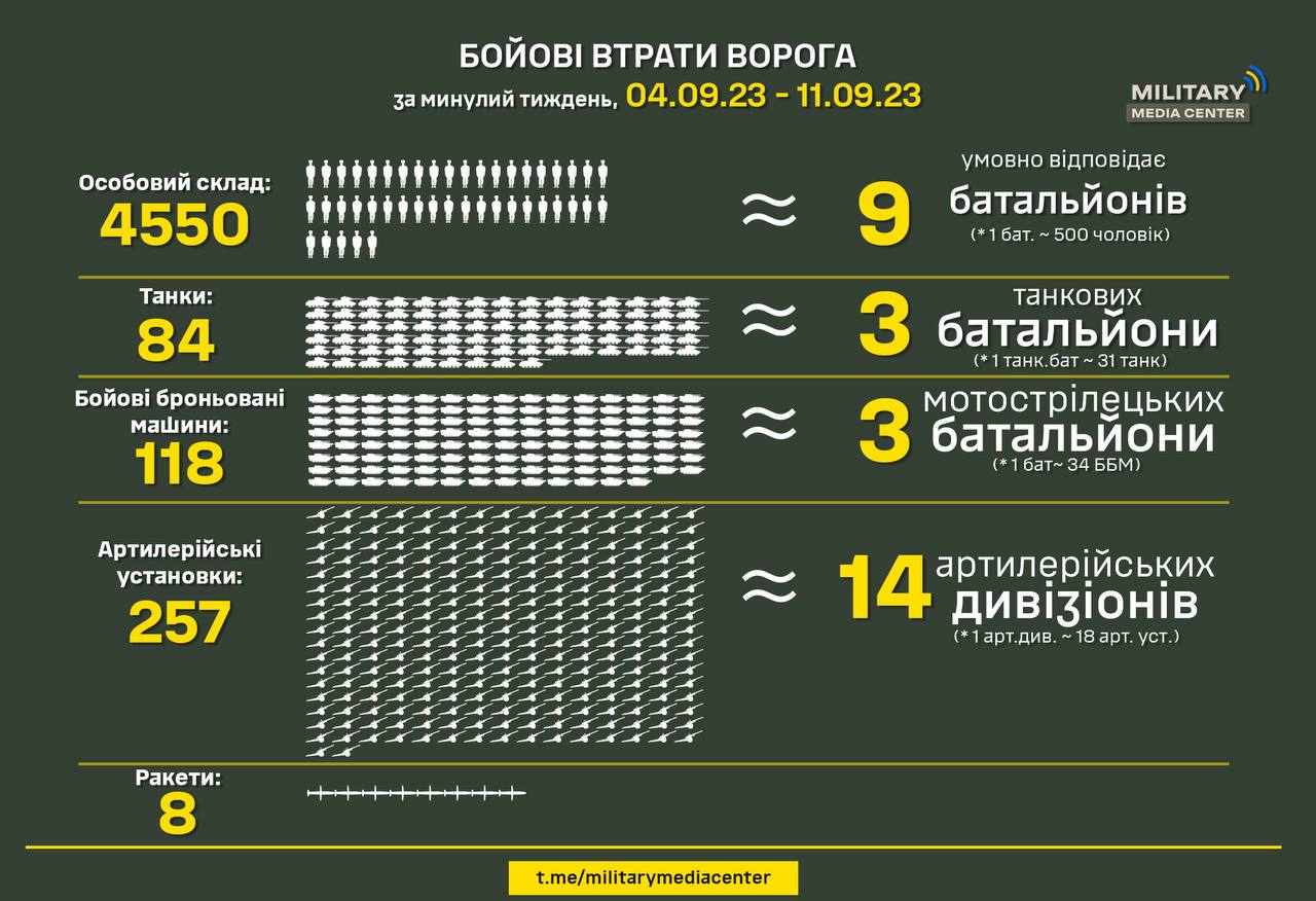 Сили оборони України за минулий тиждень з 04.09 по 11.09 знищили: