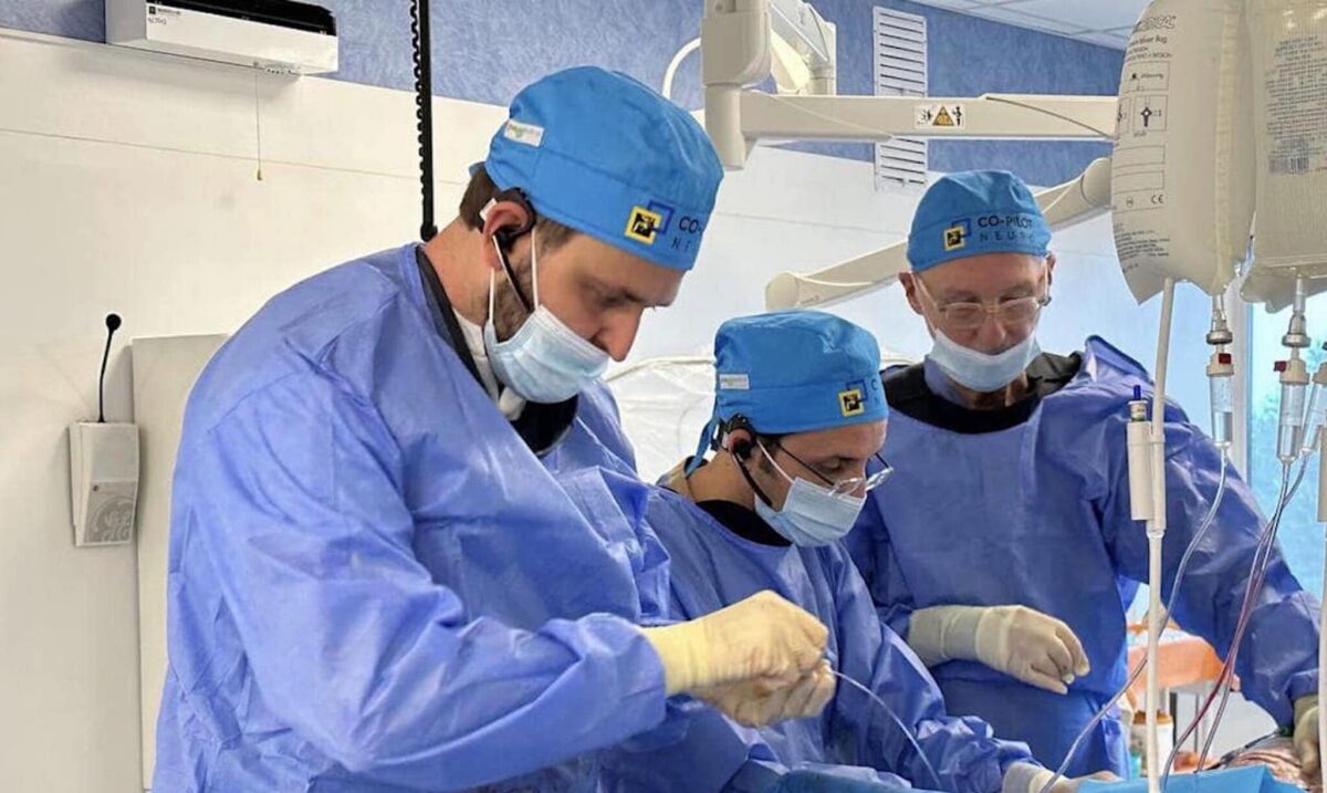 — У рамках місії Razom for Ukraine до нас завітали одні з найкрутіших в світі нейроінтервенціоністів Maksim Shapiro та Peter Kim Nelson з Нью-Йорка, — розповів кандидат медичних наук Юрій Чередниченко. — За тиждень ми провели 16 надскладних операцій пораненим та пацієнтам з цереброваскулярною патологією. Вісім з них — за безпосередньої участі фахівців із США з трансляцією наших операцій онлайн з операційної для фахівців з України та США. Інші операції виконали, користуючись порадами та високовартісними інструментами, що надали нам американські колеги.