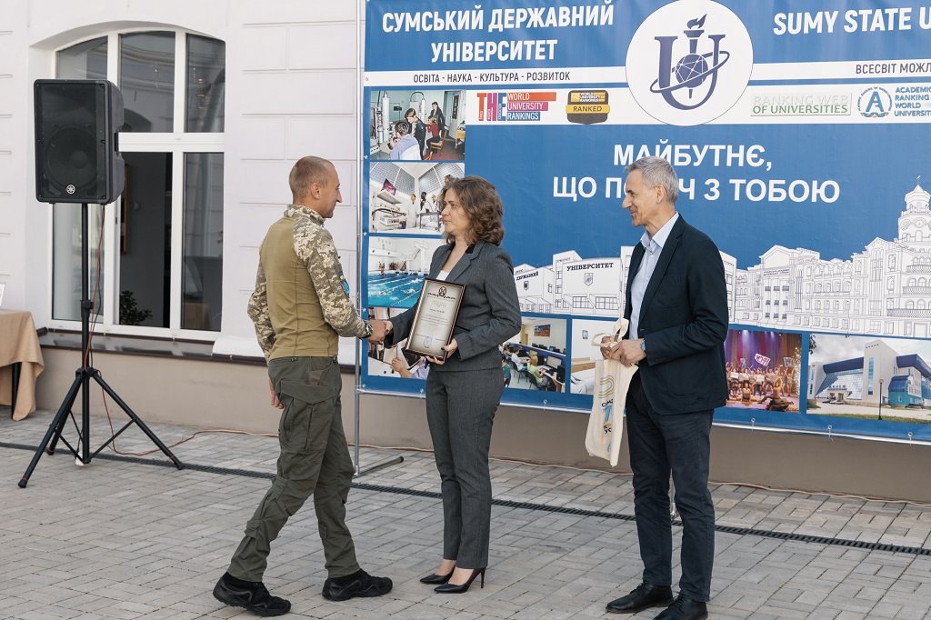 Перший заступник начальника Сумської обласної військової адміністрації Тарас Савченко та міський голова Сум Олександр Лисенко відзначили важливість і нагальність створення Центру ветеранського розвитку, подякували усім, хто долучився до його створення, зокрема, СумДУ, зазначивши, що університет є партнером в усіх соціальних проєктах і заходах, які реалізовує місцева влада.